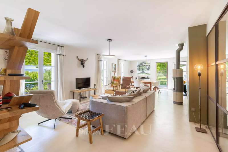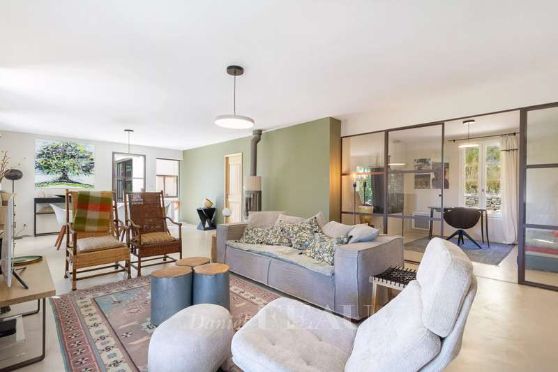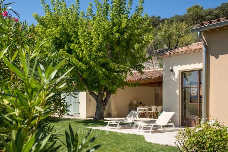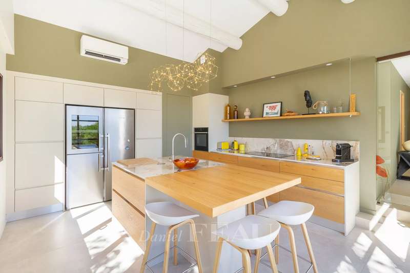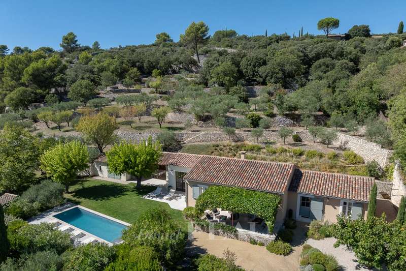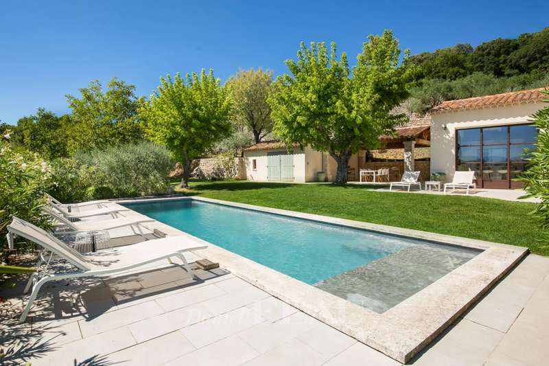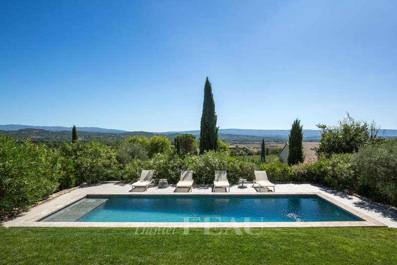 This relatively recent 140 sqm single-storey property commanding a superb view of the surrounding villages and the countryside is located in peaceful Joucas village just a few minutes from Gordes. Renovated throughout and extended in 2022, it includes a spacious living/reception room bathed in sunshine and opening onto two terraces, a contemporary kitchen with an adjacent utility room, a study, and three bedrooms including a master suite with a shower room and a dressing room. The over one-hectare of grounds is planted with an olive grove and fruit trees, and features a lap pool and a little belvedere commanding a breathtaking view. With a 40 sqm garage.