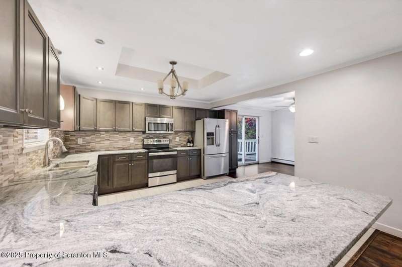 Beautiful East Mountain Gem! Nestled in a quiet, prime East Mountain location, this stunning 3-bedroom home offers comfort and style throughout. The main level features gleaming hardwood floors, while the lower level boasts elegant tile flooring. Enjoy a massive kitchen complete with granite countertops, stainless steel appliances, and plenty of space for entertaining. Step out from the dining room onto a spacious 20x27 ft deck overlooking a level backyard -- perfect for gatherings and relaxation. Split units in family room and living/dining area ensure year-round comfort. With abundant storage and modern updates throughout, this home is a must-see!