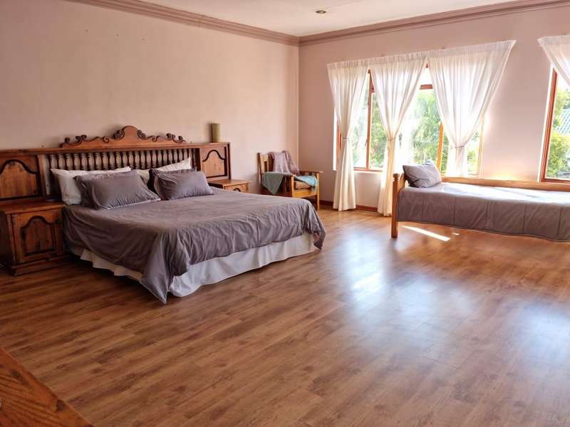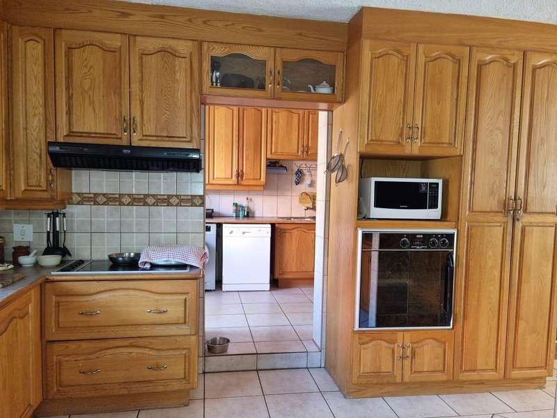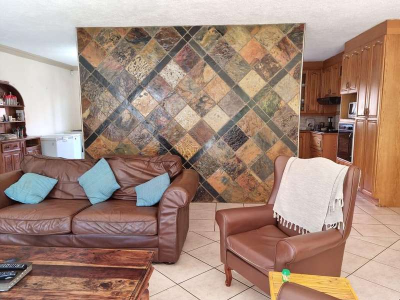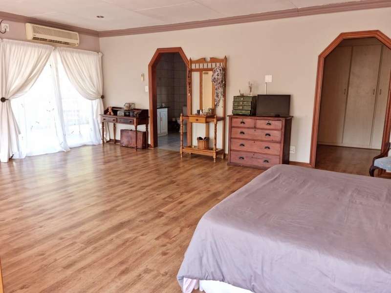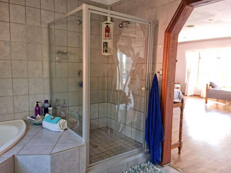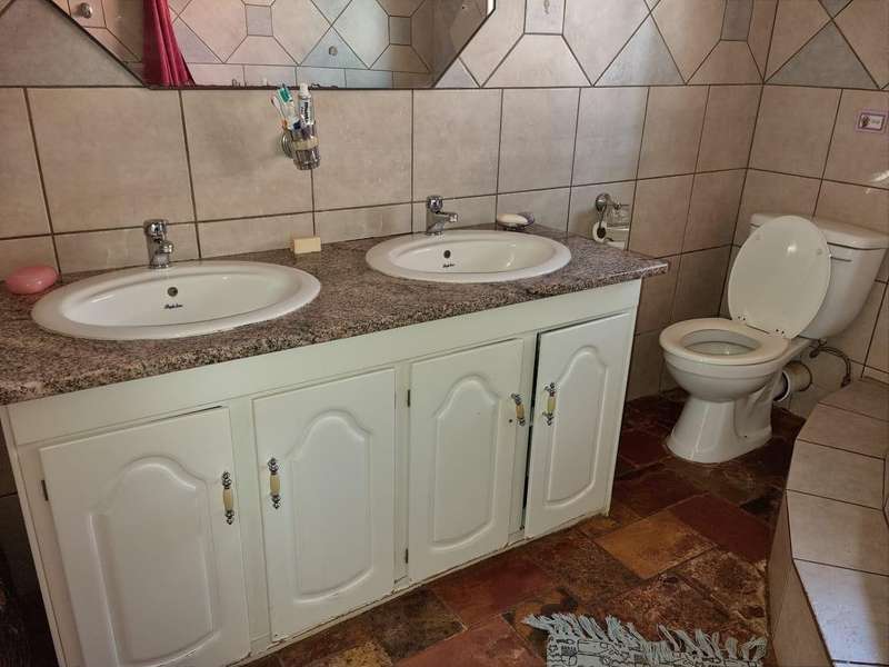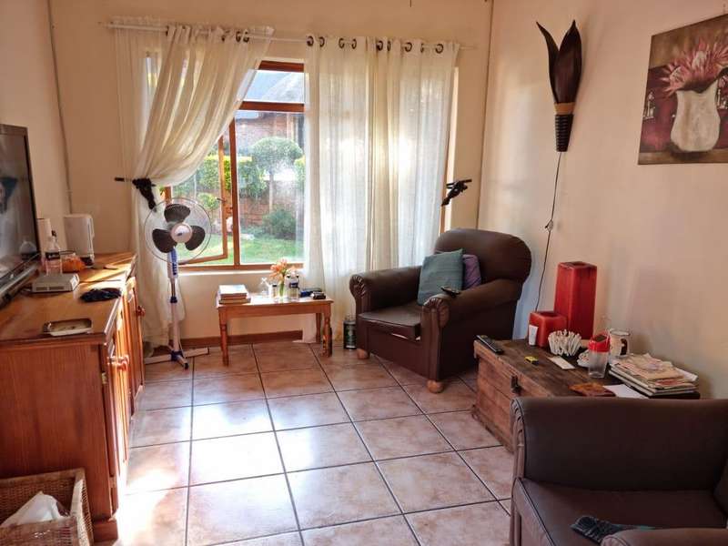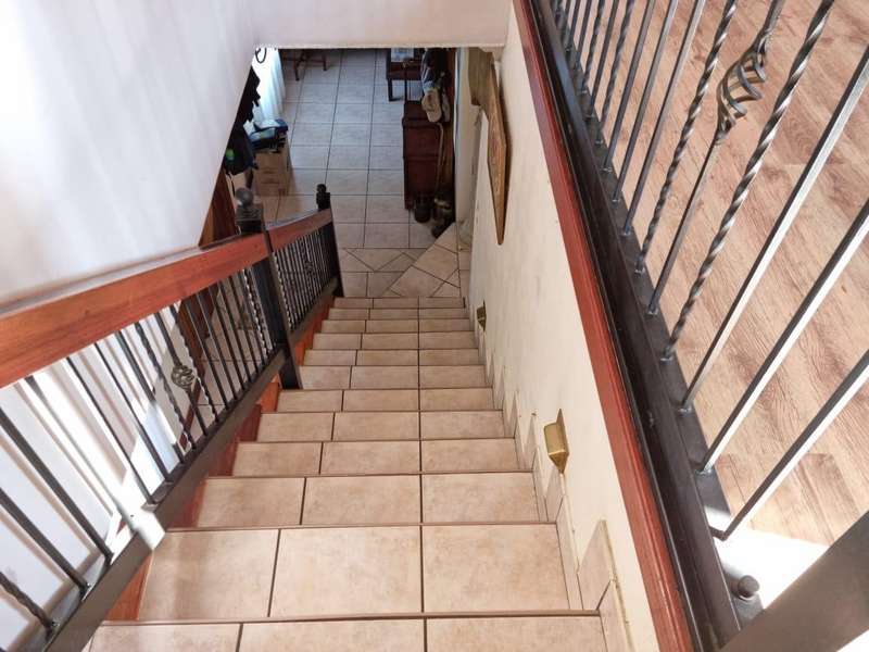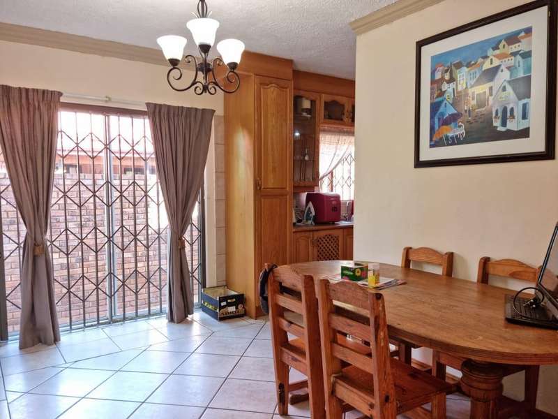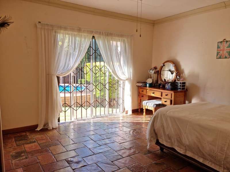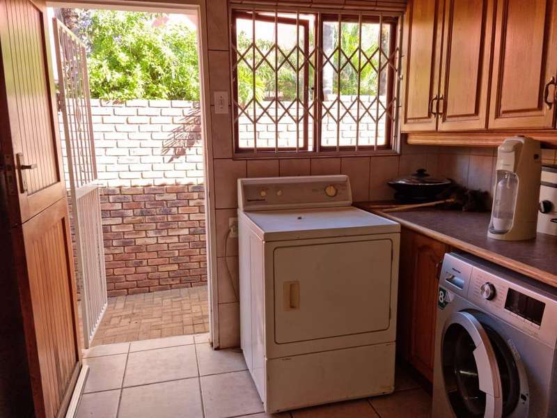This house is one of eight units in a small upmarket secuity complex. Upon entering this 4 bedroom house, the study is on your left and the staircase leading to the main bedroom to the right. The huge main bedroom with it's laminated flooring, is overlooking the entertainment area and stunning pool below. It also has a beautiful balcony from where you can experience a bushveld sunrise. The main bedroom has a full bathroom and walk in cupboard as well as an aircon. The downstairs flooring is slate except for one carpeted bedroom. All the downstairs rooms and living areas have ceiling fans as well as sliding doors leading to the outside entertainment and pool area. The sliding doors are fitted with Trillidoors. The outside lapa and braai boasts a beautifull built in bar and jacuzi, each with a slliding door leading to the lapa. The stand-alone flatlet has 1 bedroom, lounge and kitchenette area. The bathroom consists of a toilet, basin and shower and is ideal for a elderly person or student. Phone me to arrange a viewing of this upmarket property.