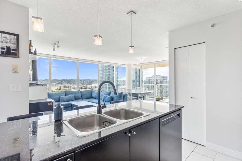 UNOBSTRUCTED WATER VIEWS! Stunning two bedroom and two full bathroom corner unit at sought after concrete high rise "Quantum" by fabulous Bosa. The floor to ceiling windows give you a jaw-dropping SW facing views from every room. Granite countertops, stainless steel appliances, gas stove and a functional open concept layout, always keeping that view in mind. One parking and one storage locker. Amenities include a rooftop garden, sauna, gym, meeting rooms and bike storage. Located right in the heart of New Westminster, just steps away from the Skytrain station, Pier Park and New West Quay.