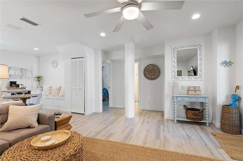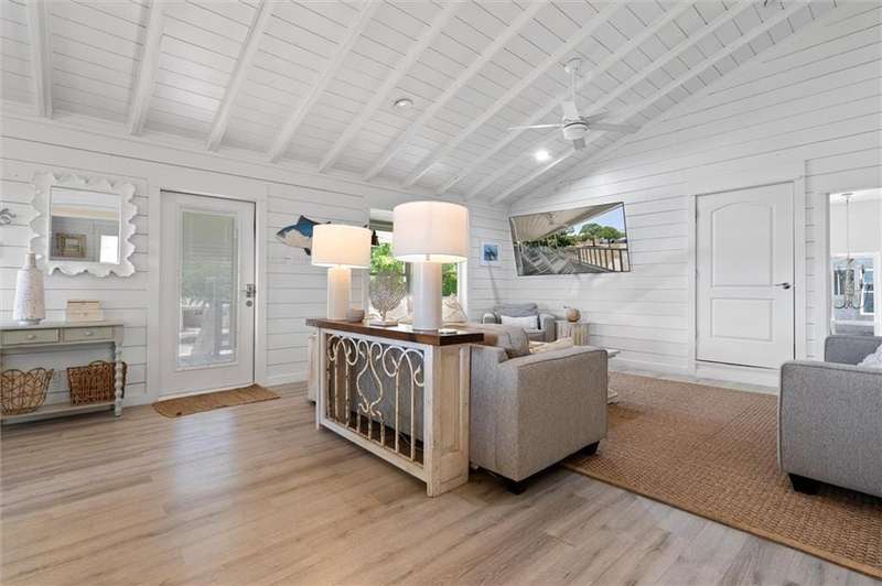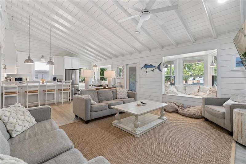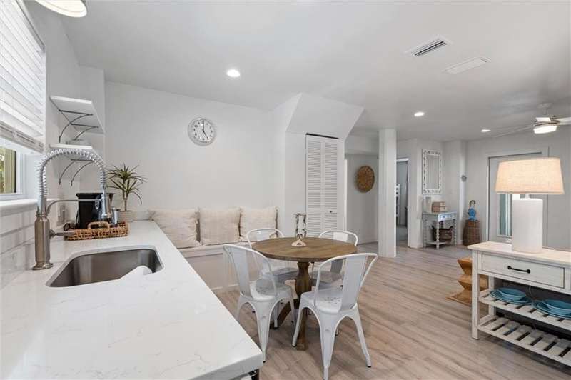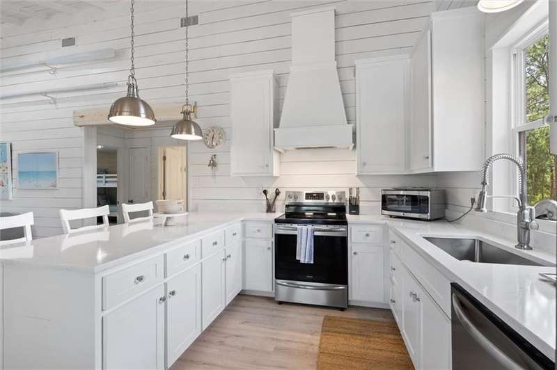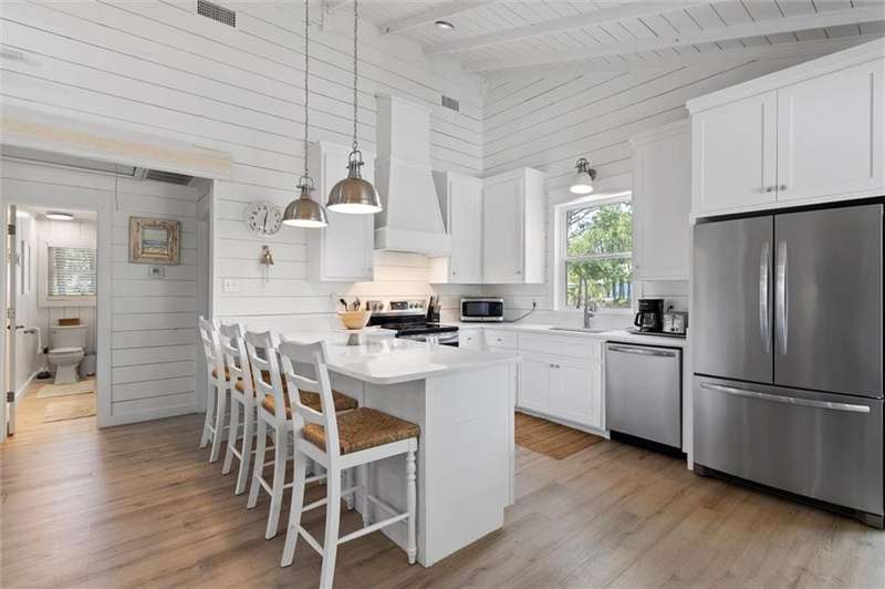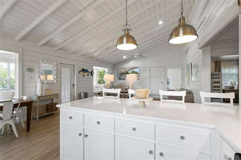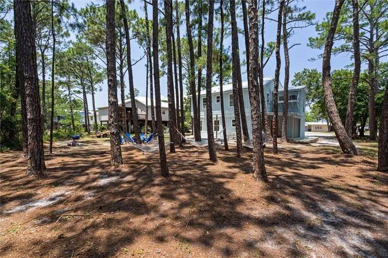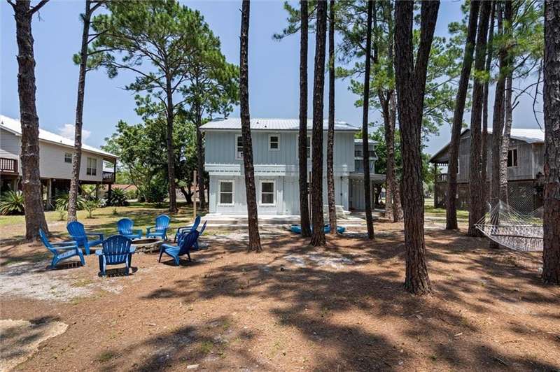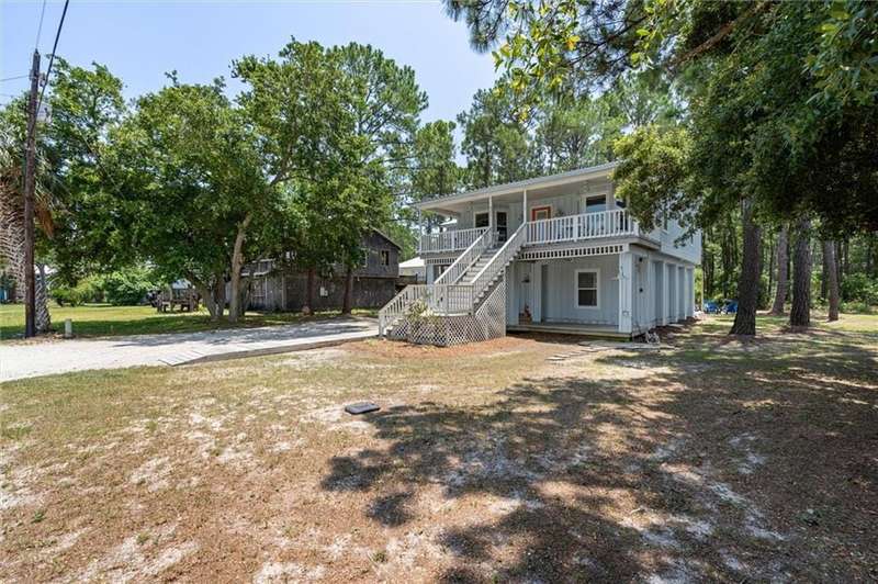 This Dauphin Island home offers incredible features in a prime water views location! The four-bedroom, two-bathroom beach house is a must see! The spacious layout of the home both inside and out ensures ample room to relax and enjoy the island lifestyle featuring a large front porch perfect for viewing the island sunrise while relaxing with your morning coffee or enjoying a cocktail after enjoying the Island! The inside of the home has shiplap walls throughout and high vaulted ceilings in the upper living and kitchen area. The coastal vibe eat-in kitchen has white cabinetry with a matching white custom range hood, granite countertops, stainless steel appliances and a breakfast bar. You'll love the light airy coastal vibe of the home that has an abundance of light that floods the living areas. The split floor plan provides a separate living area with an open concept family room, kitchenette, bedrooms, and bath, perfect for guests visiting your Dauphin Island get away. At the rear of the home, you will find a relaxing patio to enjoy the quiet wooded backyard. This location is near local beach access points, bay front parks, boat launches, and the Island-long bike trail. Schedule a showing today and see this special home for yourself! *Buyer to review deed restrictions, zoning or local regulations, and other matters or record. Buyer to verify all information independently. Any and all updates are per Seller(s).