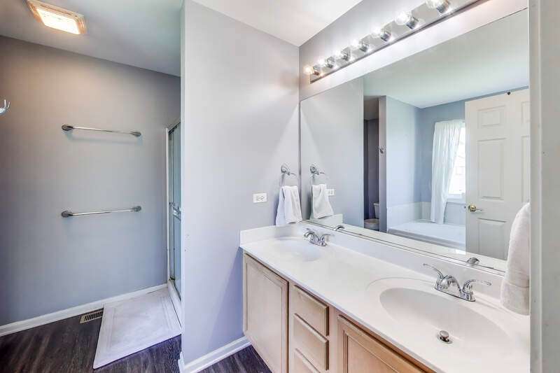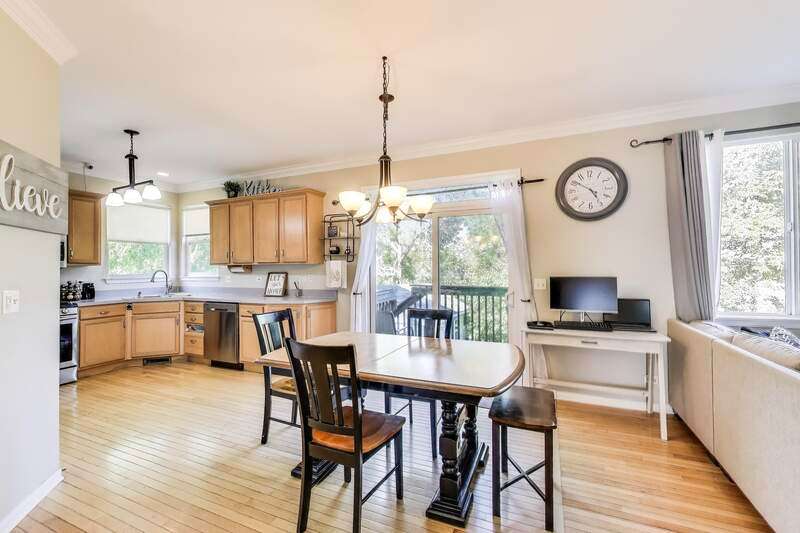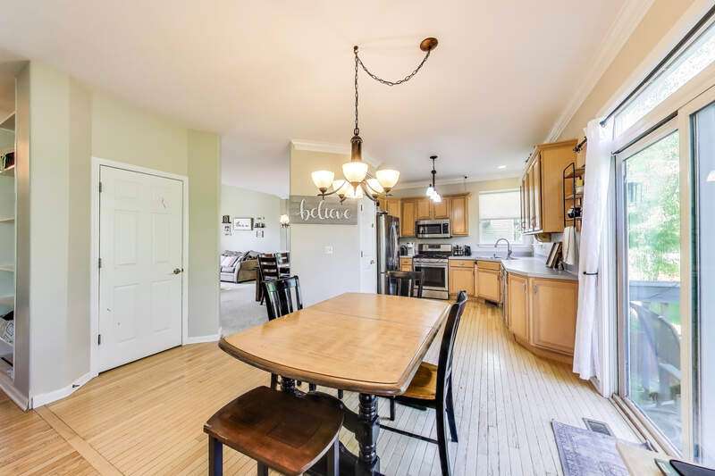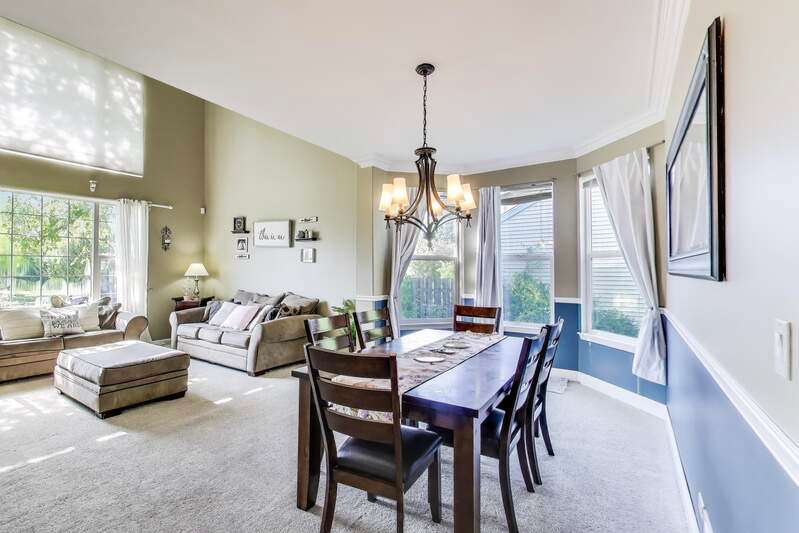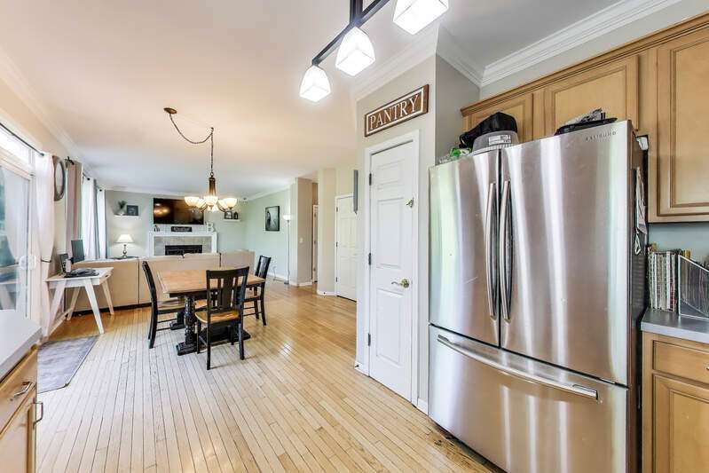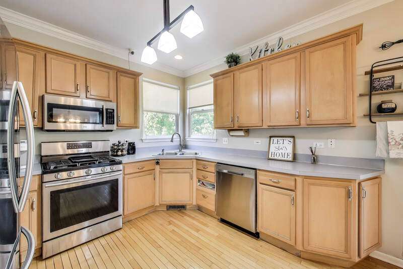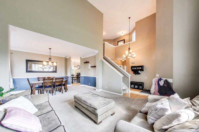 Love where you live-this home offers more than just beautiful space; it offers a lifestyle. Set on a quiet cul-de-sac with a private backyard, with walking paths and park access steps away, it's the kind of place you'll look forward to coming home to. This beautiful property offers over 3,600 square feet of thoughtfully designed living space with a rare combination of comfort, privacy, and entertaining potential. As you step inside, you're greeted by an open floorplan with soaring cathedral ceilings and oversized windows that pour in natural light. The formal living and dining rooms flow together beautifully, making it easy to host large gatherings or intimate dinners. The kitchen is the heart of the home and a standout with plenty of cabinets for storage and a roomy closet pantry. This space flows to the dining room and then, the family room where you will love cozying up to the fireplace on a chilly winter night. Conveniently located off the garage, you'll also find a nearby powder room and laundry area for added function. Sliding patio doors lead from the kitchen to a raised deck-ideal for grilling or morning coffee while taking in views of your private backyard. Imagine preparing your favorite holiday meal while still being part of the conversation-this layout makes that a reality! Upstairs, the spacious primary suite is sure to please with a vaulted ceiling, walk-in closet, and ensuite bath featuring a soaking tub, separate shower, and dual vanity. Three additional bedrooms share a full bathroom. The walkout basement offers endless possibilities! With full exposure, large windows, and a sliding glass door to the backyard, this space is flooded with natural light. This space provides flexible living options, and outside, the brick paver patio and a separate fire pit invites you to unwind under the stars with family and friends. An empty lot next door ensures no future construction, adding peace, privacy, and open space to enjoy for years to come. This home is truly a rare find-spacious, light-filled, and set in an ideal location with nature right outside your door.