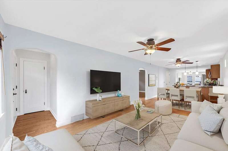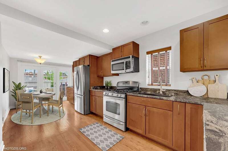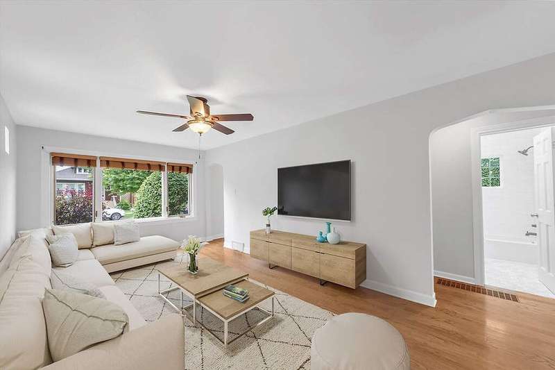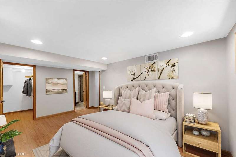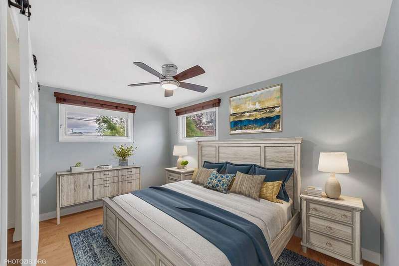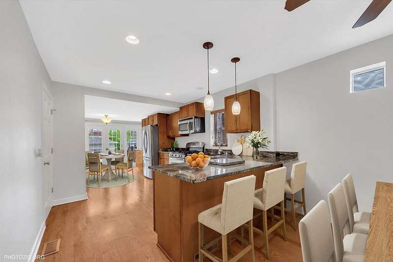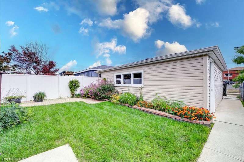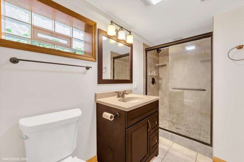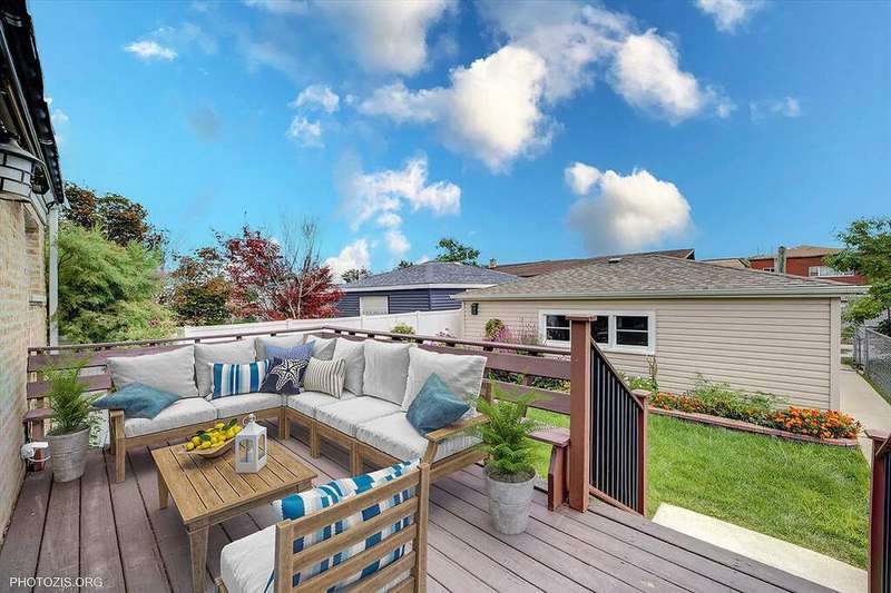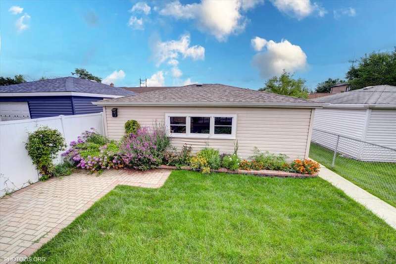 West Garfield Ridge - Neat as a pin! This solid brick, raised ranch blends timeless charm with thoughtful updates. The sun-filled main level features three generous bedrooms and a show-stopping farmhouse-style bath, complete with a vaulted ceiling, skylight, subway tile, shiplap detailing, tiered shelving, and designer lighting. The open-concept living and dining area boasts gleaming solid oak floors, crisp hardwood trim and doors, and flows seamlessly into a beautifully renovated kitchen. The kitchen includes a wall of cherry cabinetry with pull-out storage, granite countertops, a farmer's sink, breakfast bar, pendant lighting, and stainless steel appliances. A bright dining space opens directly to the expansive rear deck with built-in bench seating. The finished lower level is equally impressive, offering a spacious family room with cozy fireplace, a fourth bedroom, a full bath, a versatile hobby room, and abundant storage. Thoughtful upgrades throughout the home include newer windows, ceiling fans, roof, and insulation, ensuring comfort and efficiency. Terrific closet space can be found on both levels. Additional attic storage is easily accessed via a newer pull down ladder. Step outside to enjoy the fully fenced yard, complete with stone-trimmed garden beds, a paver patio, and a two and one half car garage. Additional outdoor highlights include a newer front porch with exposed aggregate steps, bronze-tone railings, and newer front door. Terrific location is walkable to schools, parks, and restaurants. A true gem in West Garfield Ridge-don't miss this one!