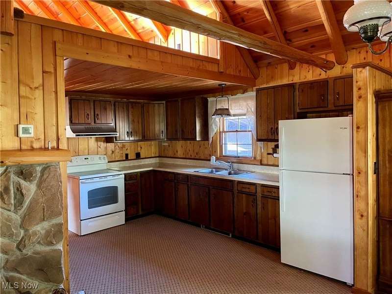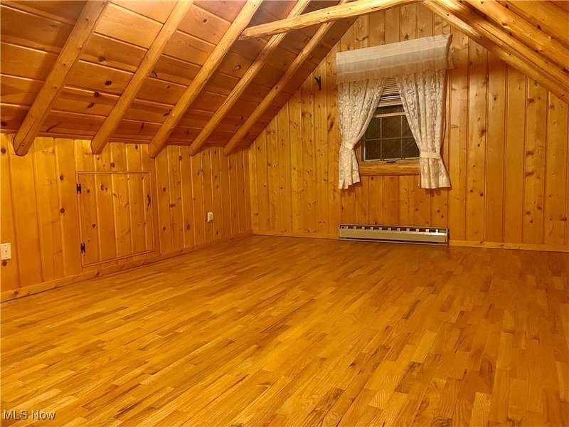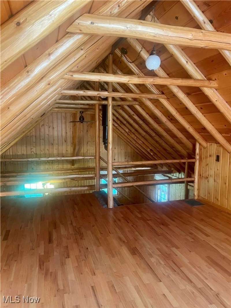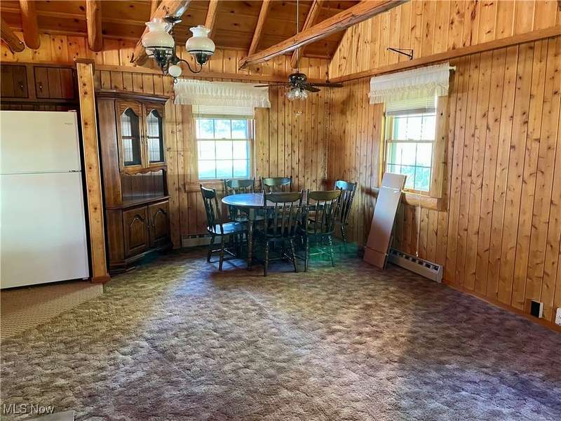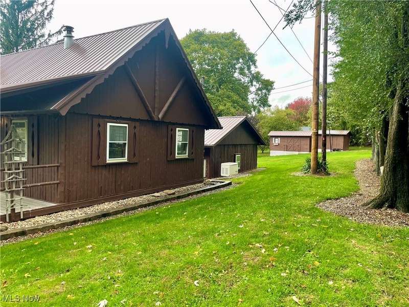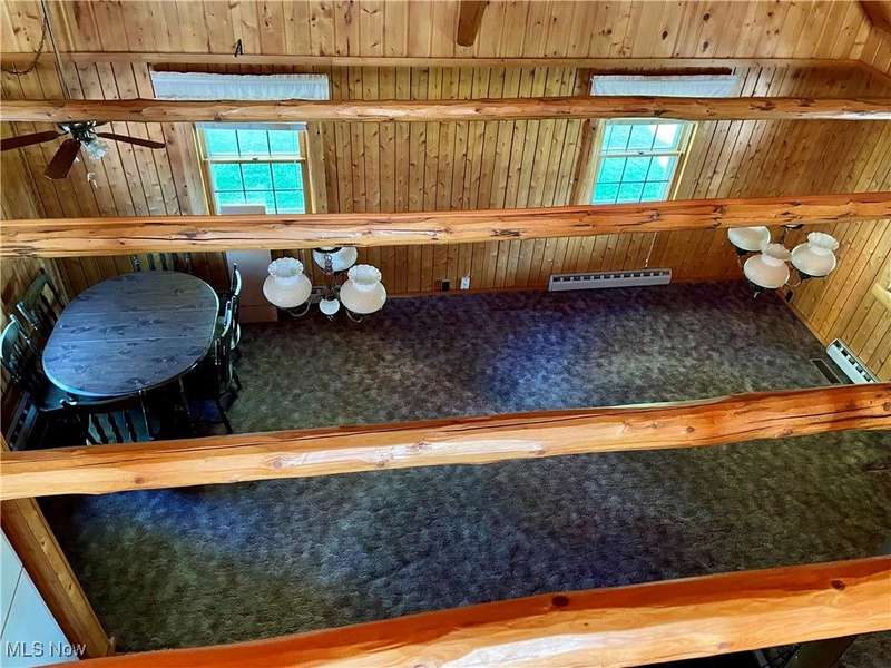 Discover the perfect blend of country charm and small-town convenience in this meticulously maintained log home, lovingly cared for by its single owner. Step inside to find a stunning two-story, open-concept living room, dining room, and kitchen accented by beautiful wood beams throughout. The spacious living room features rich cedar walls and opens seamlessly to the kitchen, creating a welcoming space for entertaining or relaxing. A loft with classic wooden posts overlooks the main living area?ideal as a cozy reading nook, office, or potential additional bedroom. The finished basement offers even more versatility, with a half bath and a nearby walk-in shower, a laundry area, sitting area, and a bonus room complete with built-in cupboards and cabinets. You'll also find plenty of hidden storage cleverly built into the design. Outside, an extra-deep two-car garage provides ample room for vehicles, lawn equipment, and tools. Two additional outbuildings?a 112 sq. ft. shed and a 223 sq. ft. woodshop?add evenmore space for hobbies or storage. Situated on 2.5 lots, this property offers plenty of room to enjoy the outdoors while staying close to the conveniences of village life.