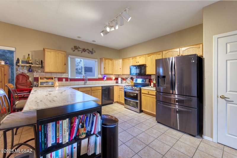 Come see this charming 2BD/2BA, 1,408 sq. ft. home with office/den offering thoughtful updates and move-in ready comfort. Enjoy a spacious kitchen with Corian counters, a double oven and stainless appliance suite. Open living with kitchen, dining and living area, updated tile floors and baths, plus newer HVAC (2024) and routinely maintenanced flat roof. This premium lot backs to a green space, offering privacy, desert views, and a covered patio for outdoor living. Block wall fencing surrounds the yard, while the 2-car garage provides convenience. Located in Sierra Vista's gated 55+ Vista View Resort, you'll love the clubhouse, heated pool/spa, pickleball, trails, dog park, and active social calendar. Monthly resort fee, no HOA. You own your home, but no land ownership = no property taxes