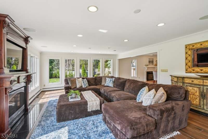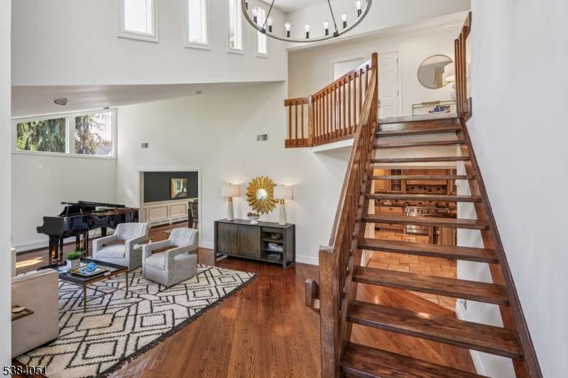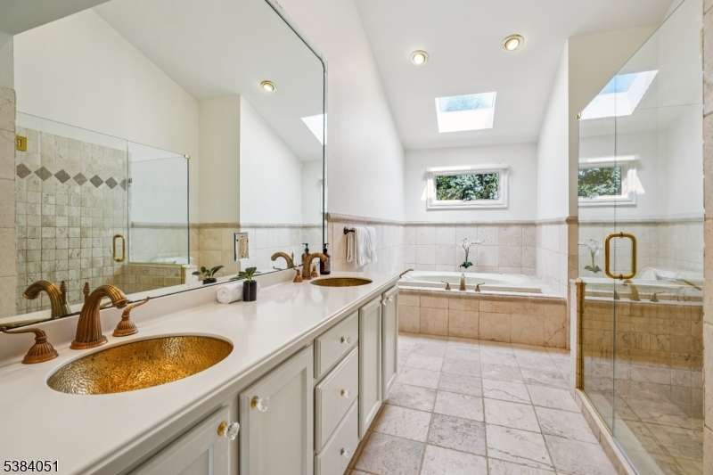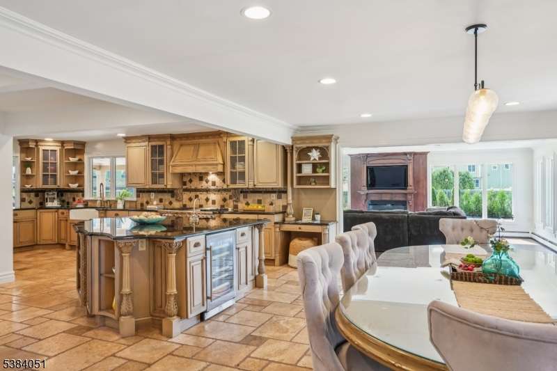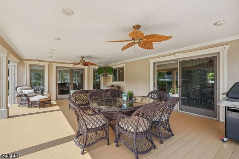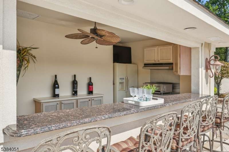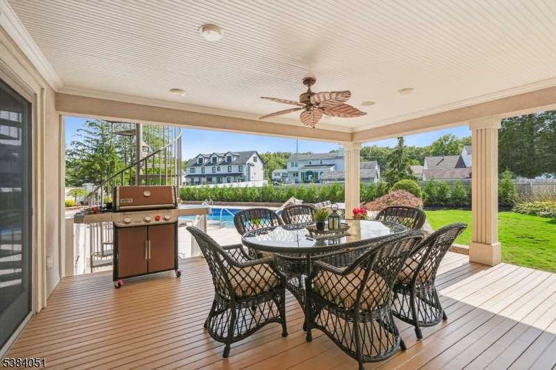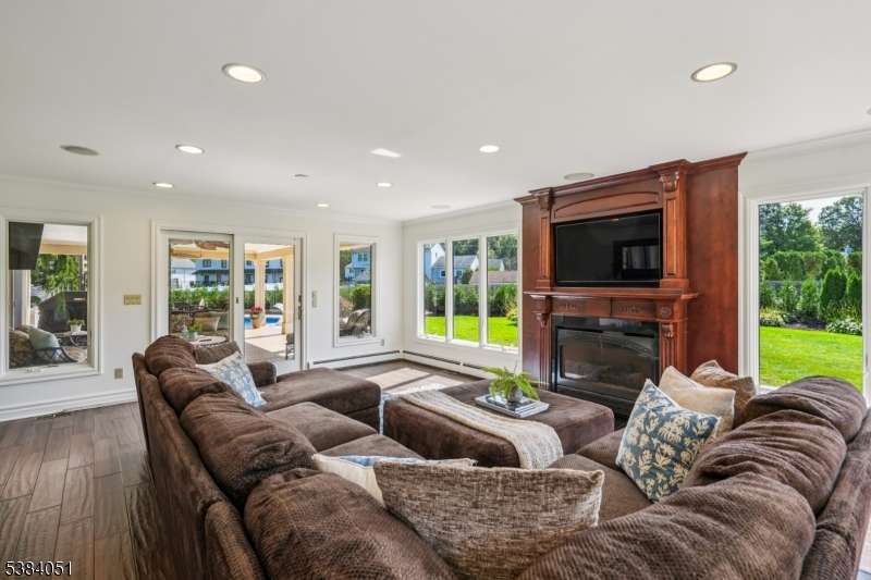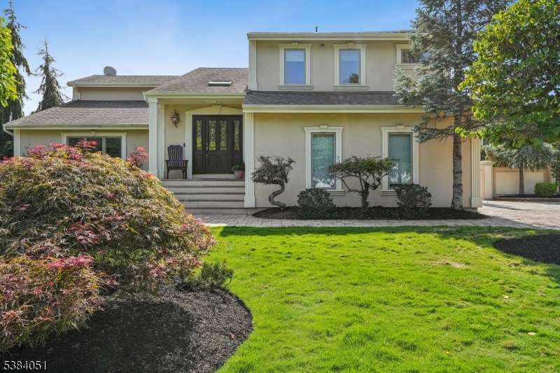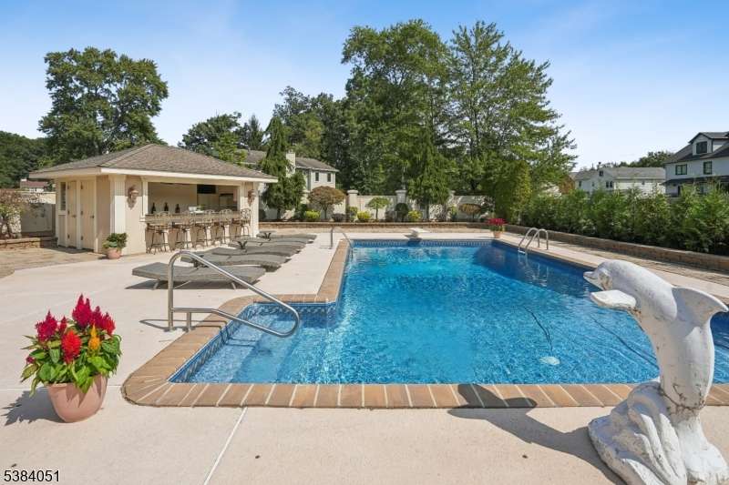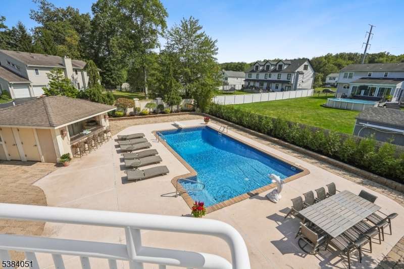 Tucked away on a quiet cul-de-sac, the gracious entry with dramatic cathedral ceilings sets the tone for this 4BR, 4.5BA custom home. The chef's kitchen features custom cabinetry, high-end appliances, a large island and a spacious dining area with gas fireplace. The kitchen is open to the great room, which showcases soaring windows, a second gas fireplace and sliders that lead to the expansive covered porch overlooking the in-ground pool, cabana, and lawn area for play or entertaining. Formal dining room with elegant molding also opens to the covered porch and a sun-filled living room completes the main level. Upstairs offers 3 generous bedrooms plus a primary suite with 2 custom closets, spa-like bath with double sinks, spa tub, separate shower, washer/dryer closet, and private balcony. Main hall bath serves the additional bedrooms. Finished walk-out lower level includes recreation room, spacious media room, flex space with 5th BR/ office option, full bath, walk-in closet, laundry and storage. All closets are professionally customized. 2-car garage with EV charger. Resort-style living in your own private oasis!