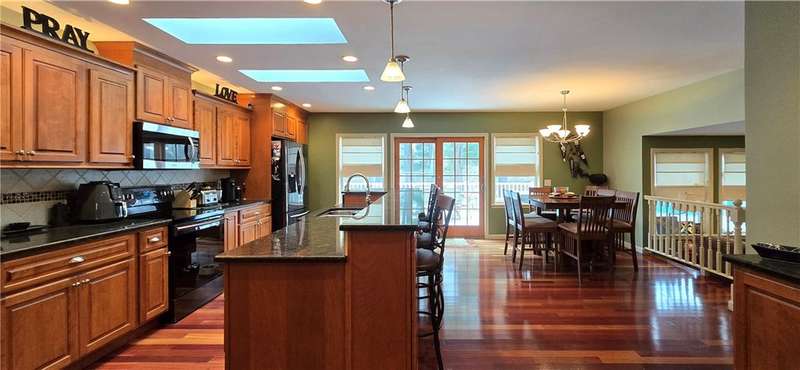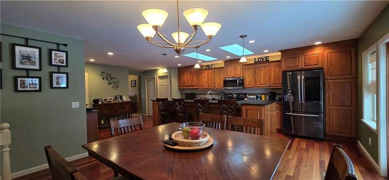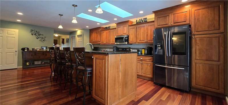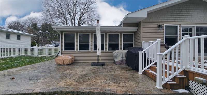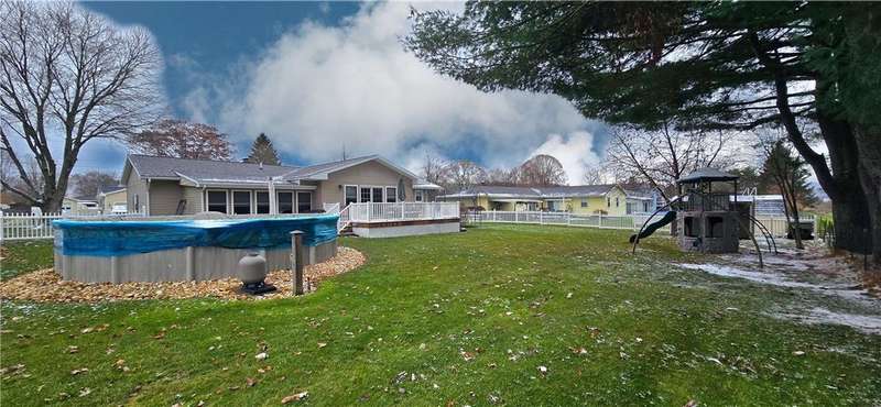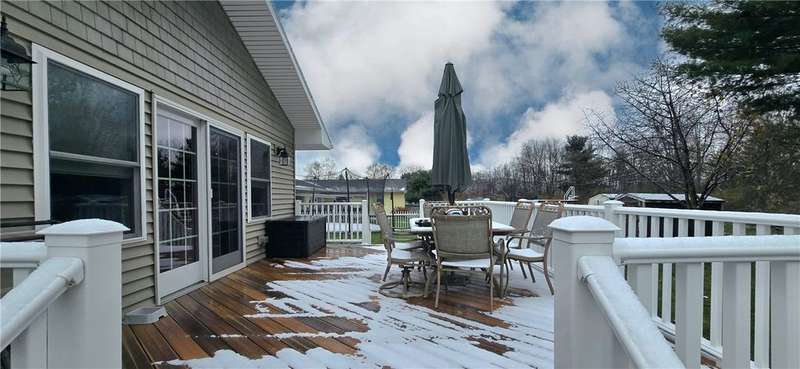 Beautiful ranch in Big Flats with 4 bedrooms and 3 full baths, including a master suite. The kitchen, dining, and family room connect in an open-concept design that makes the home feel spacious and welcoming. Brazilian cherry floors highlight the kitchen, while quarter-sawn oak floors add warmth to all the first-floor bedrooms. Granite counters, stainless steel appliances, and semi-custom red birch cabinets complete the kitchen.Step in from the garage through a mud room that keeps things organized. The family room features radiant electric floors, and the finished lower level offers another family room, office, laundry with bath, bedroom, bonus room, and plenty of storage.Outside, enjoy a fenced backyard with an above-ground pool, stamped patio, and deck. Central air and an attached 2-car garage round out the home's comfort and convenience.