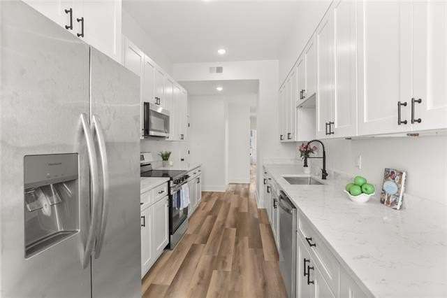 Beautiful Brand New Uptown Double! This property offers amazing income potential—perfect for investors or homebuyers looking for rental income. Live in one unit and rent the other, or enjoy a spacious Uptown home with a flexible layout. Each unit entails a 3B/2B format (or 2 bedrooms with bonus/office room) Enjoy walkability to the Freret Corridor, Ochsner Baptist campus, and quick access to I-10 and CBD. Enjoy an inviting front porch, open air balcony, and a large fully fenced backyard. Features include abundant natural light, private laundry, ample storage, wood tile floors throughout, and gleaming kitchens with stainless steel appliances. This home is truly move-in ready!