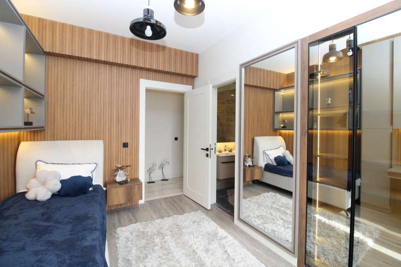 The complex, built on 9.378 sqm of land, consists of two blocks. It includes an indoor swimming pool, sauna, Turkish bath, basketball court, football field, spacious communal garden, kids’ playgrounds, indoor and outdoor car parking areas, modern fitness centers, 24/7 security camera system, and a lift.