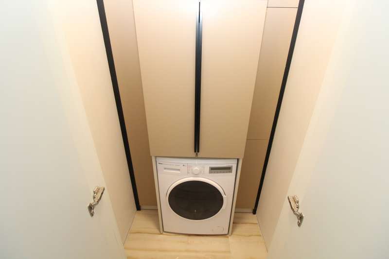 The four-bedroom real estate has a cozy living room, separate kitchen, bathroom, en-suite bathroom, dressing room, laundry room, storage, and balcony. City-view real estate features kitchen appliances, laminate flooring, wet flooring, wallpapers, and a central underfloor heating system.