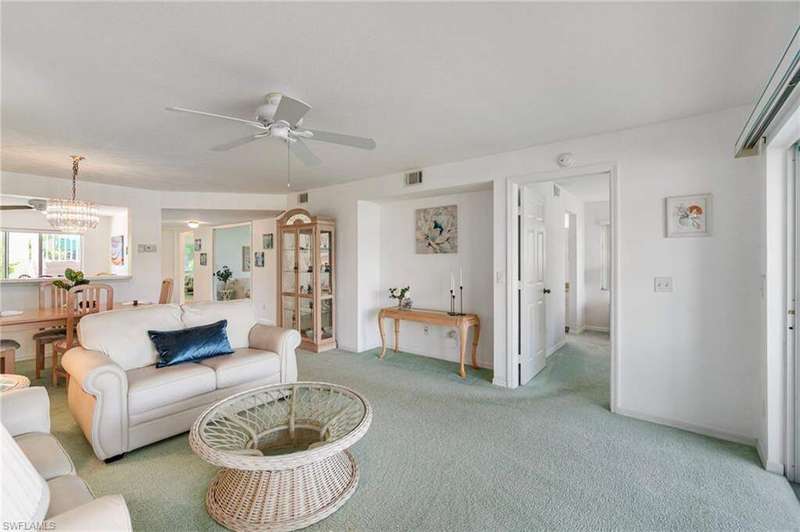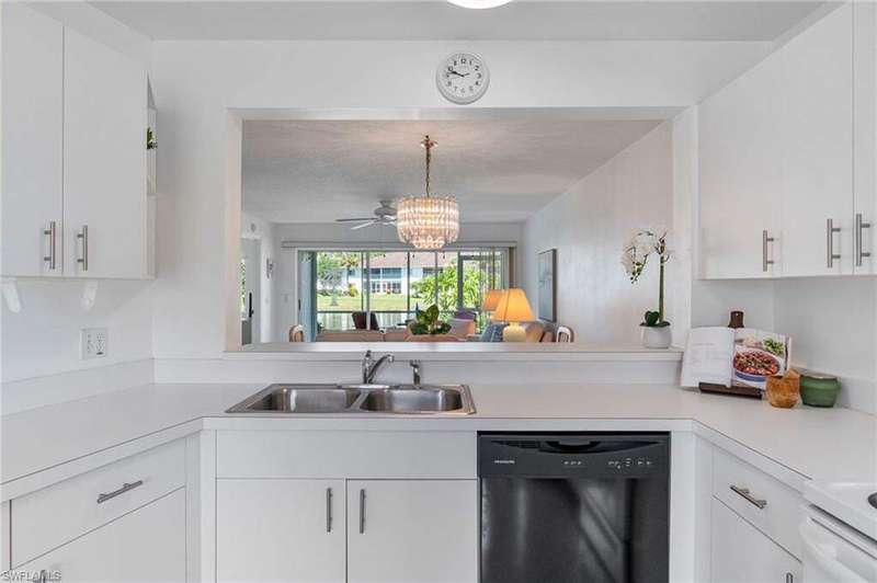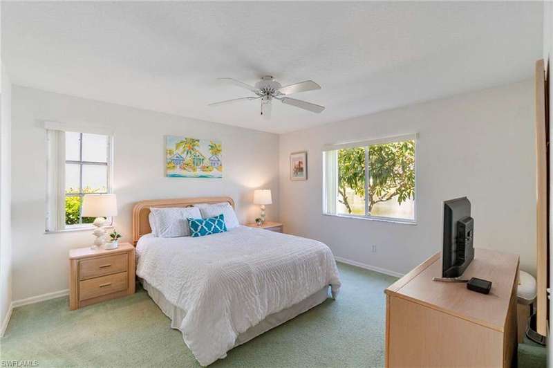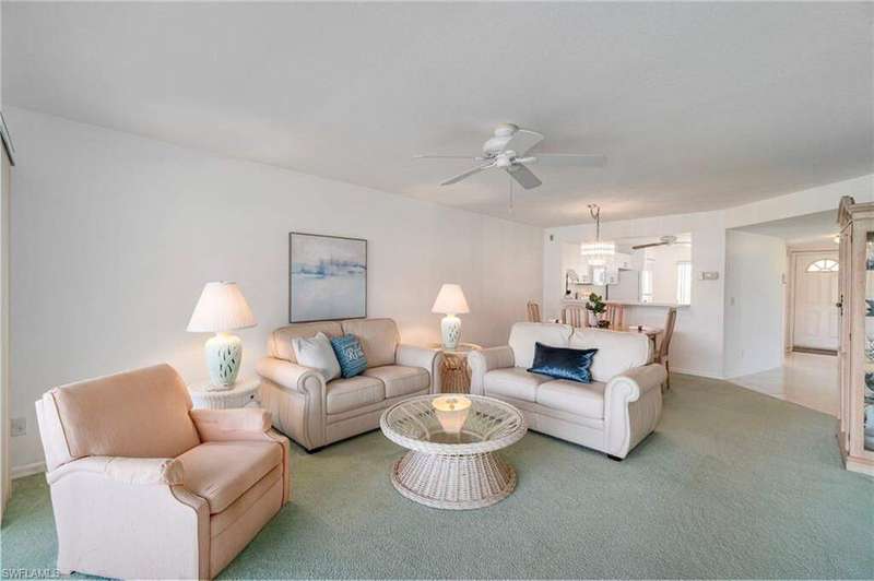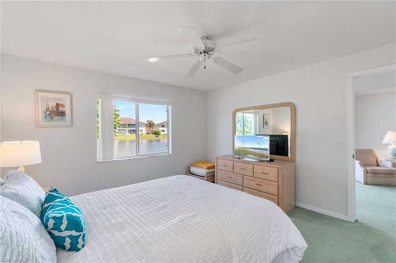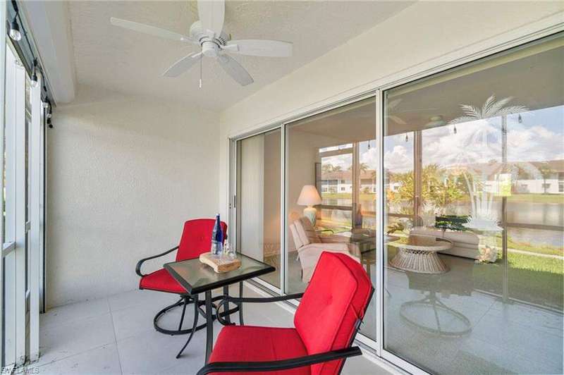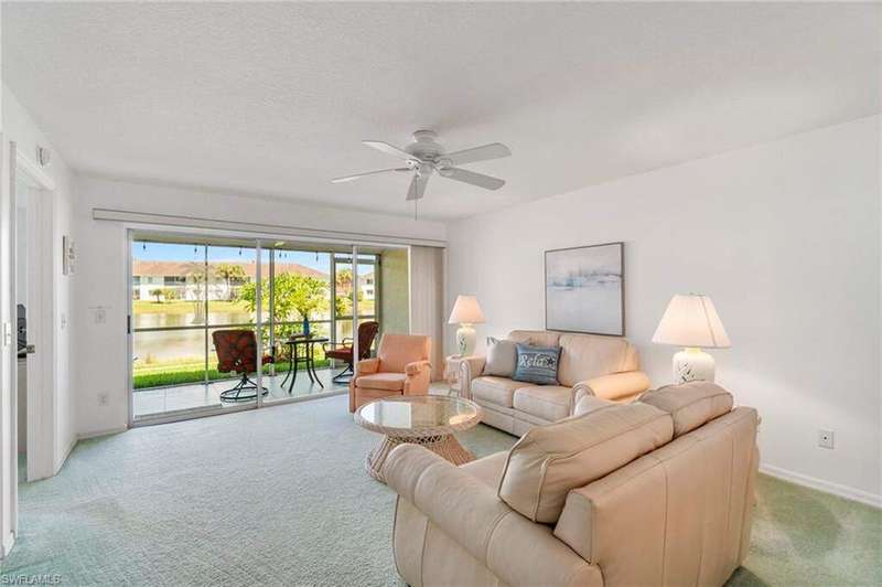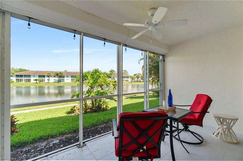 Light and bright FIRST-FLOOR CORNER END UNIT with 3 bedrooms, offering panoramic views of the sparkling lake and walking path in the sought-after Sapphire Lakes community. This condo is being rented turnkey furnished, making it move-in ready for season-perfect as a winter retreat or an excellent rental condo. Enjoy serene mornings on the screened lanai overlooking the lake, complete with electric hurricane shutters for peace of mind while away. Sapphire Lakes is a vibrant, gated community featuring pickleball, bocce, tennis, picnic areas with grills, scenic walking trails, and four heated pools. Centrally located, just 5 miles to 5th Avenue dining, shopping, and Naples' Gulf beaches. Schedule your showing today & grab this first-floor end unit before it's gone!