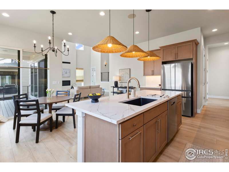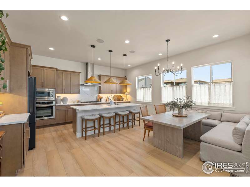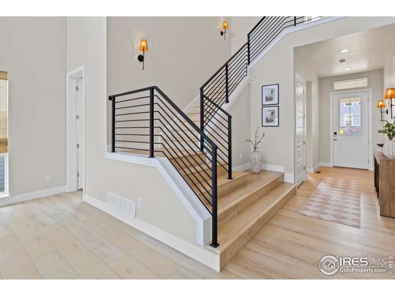 Welcome to resort-style living, offering an exceptional blend of luxury, convenience, and world-class amenities in Raindance. Enjoy a truly one-of-a-kind move-in ready home boasting nearly $300k upgrades and updates seen only in model homes. This Trumark custom-builthome is the most popular plan they build offering 5 bedrooms, 4 bathrooms plus an office with a 4-car almost 1,000 sq.ft. garage, and daylight basement for future expansion. The open floor plan great room will capture you with 20-foot ceilings adorned with windows flooding the home with natural light, and a gas fireplace to center the room. The gorgeous gourmet kitchen boasts an enormous island, beautiful, upgraded cabinetry, under cabinet lighting, full quartz countertops and full quartz backsplash, high-end Beko appliances, and a huge walk-in pantry. The primary bedroom offers breathtaking views of the Rocky Mountains including a luxurious bathroom with an oversized shower, soaking tub, and large walk-in closet. The entire home has luxury vinyl plank flooring, hand trowel textured walls, upgraded tile and quartz countertops in all bathrooms, upgraded brass hardware in kitchen and all bathrooms including faucets, along with upgraded designer lighting throughout. The entire home is wired with surround sound including the four-car garage that is finished and painted. Neighborhood amenities of walking trails, orchards, non-potable water and trash are included in your metro district fees. Better than new with full backyard landscaping and fenced yard with a covered back deck perfect for enjoying all that Colorado has to offer. This home offers an unparalleled combination of luxury, comfort, and designer finishes!
