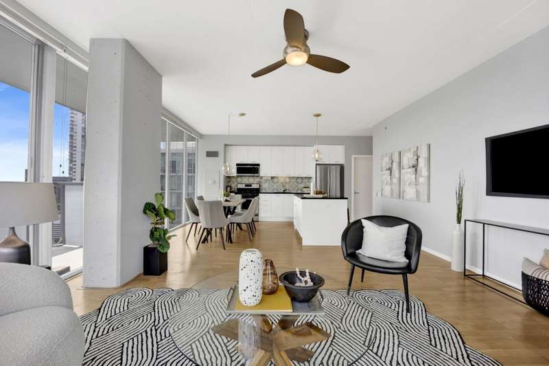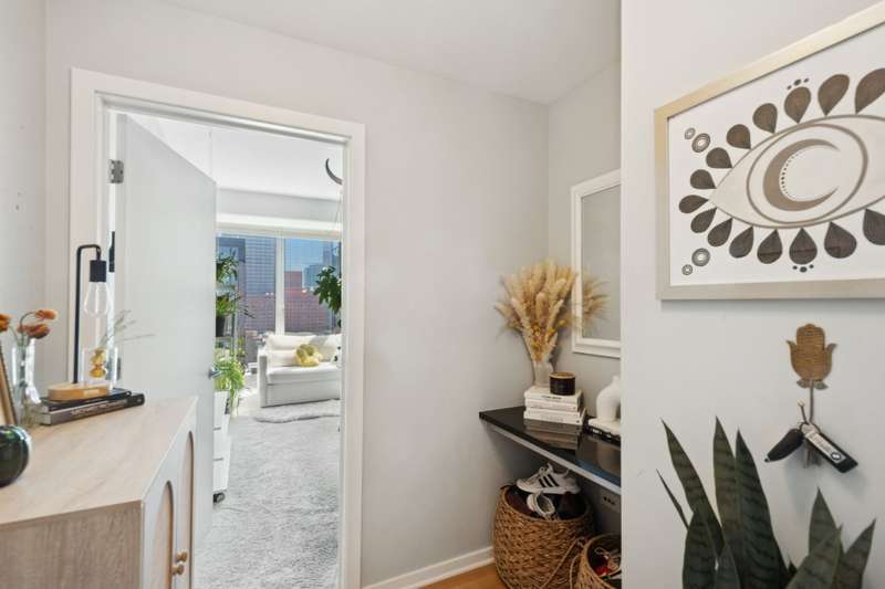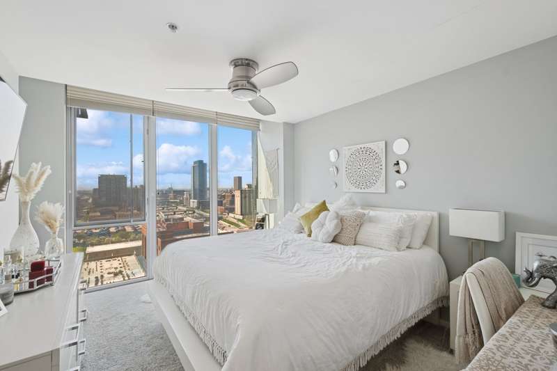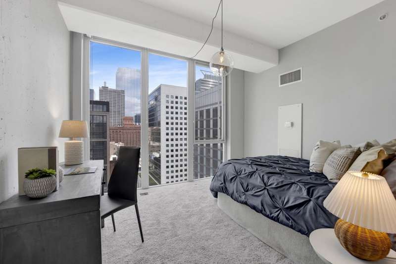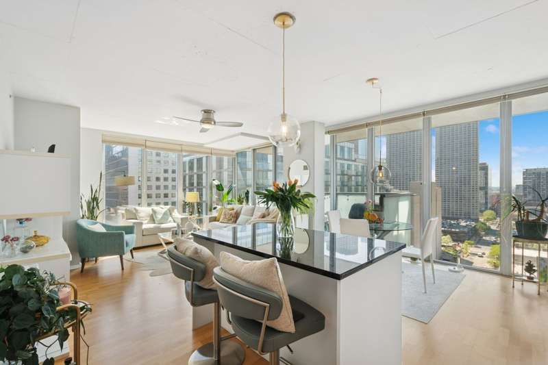 One of the most sought after 2 bed, 2 bath southeast corner units in the building! Floor-to-ceiling windows showcase stunning city views in this spacious layout with light hardwood floors, a large open-concept living area, and king-sized primary suite. Features include a sleek European kitchen with island, granite counters, and stainless appliances, plus custom closets, in-unit laundry, and a large private balcony. This full-amenity building offers 24-hr door staff, pool, sundeck, gym, and dog run-all just steps from world-class dining, shops, transit, and more. Two prime, heated/indoor deeded parking spots available for $30K each.