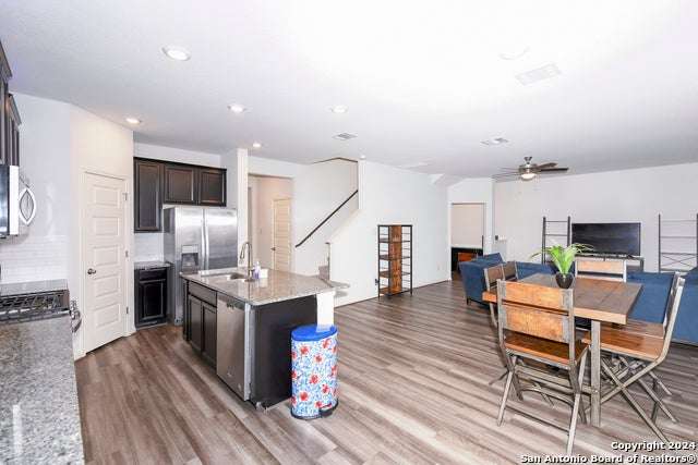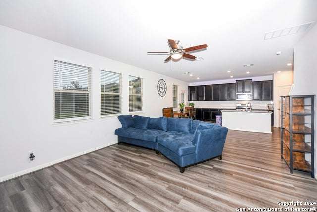 Come tour this beautiful home! Featuring an open floor plan with a combined living room and dining room, this lightly used property boasts high ceilings and is situated right next to Government Canyon. Enjoy the spacious backyard with a unique cowboy pool, which will convey with the property unless otherwise requested. The home includes two living areas and a versatile study/bar nook tucked underneath the stairs.