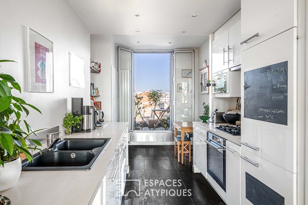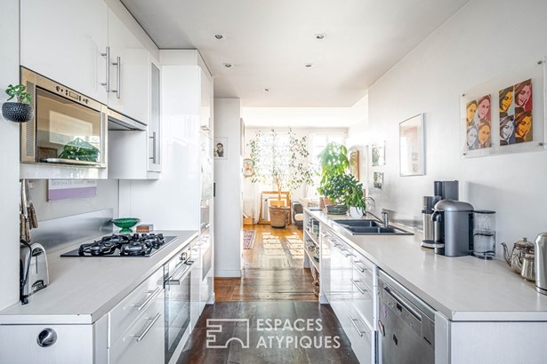 Bathed in natural light thanks to its east-west dual exposure, this cross-through apartment enjoys brightness throughout the day and open views over the Parisian rooftops.