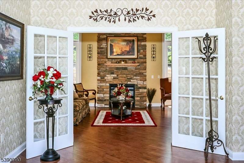 This Beautiful End Unit Townhome Shows Pride of Ownership-from the Gleaming Hardwood Floors and Tasteful Paint Colors, to the Custom Window Treatments. Large Living Room is Open to the Spacious Dining Room, just steps from the Family Room w/Woodburning Fireplace and Updated, Well-Planned, Eat-In Kitchen w/Breakfast Bar and Stainless Appliances. The High Ceilings in this space, Powder Room, Entry-level Garage and Sliders to Private Deck complete the First Level Living Comfort. The Second level offers a Huge Primary Bedroom w/Two Walk-in Closets and Full, Ensuite Bath w/Jetted Tub and Stall Shower. There are Two Additional Spacious Bedrooms and Full Guest Bath.There is also a Full, Unfinished Basement that can be Easily Finished or just used for Plenty of Storage Options.The Exterior and Grounds, Clubhouse, Exercise Room and Playground are Well Maintained-Covered by the Reasonable Monthly HOA fees, which are considered low for a complex of this quality. The Location of the Roundtop Complex is Walking Distance to Shopping, Movie Theatre, Restaurants and the Lake Mohawk Plaza. NJ's best Ski Area and Golf Courses are just a short distance and Sussex County offers Hiking and Biking Trails and Many other recreational and entertainment opportunities. Excellent location for commuting and just an hour to NYC.