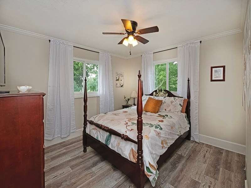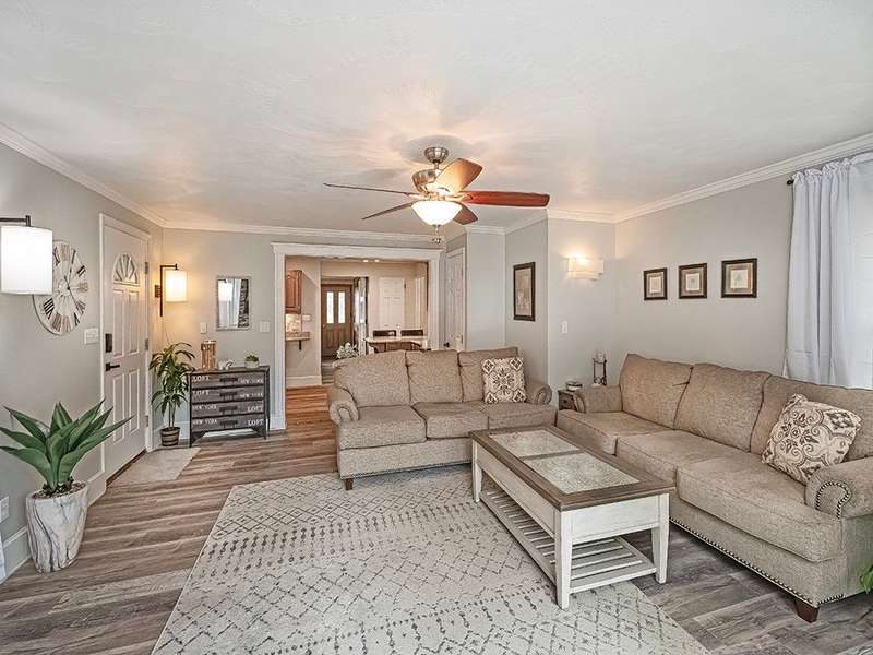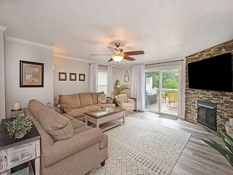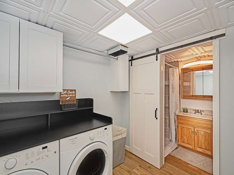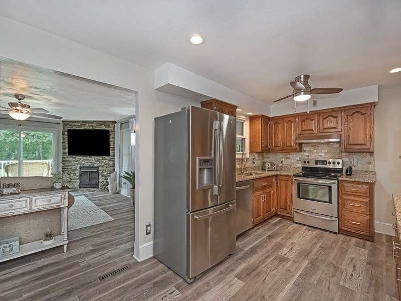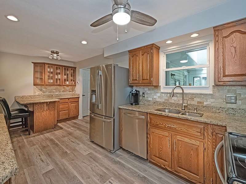 This spacious 4-bedroom, 3-bath home offers comfort, style, and flexibility with thoughtful updates throughout. The fully renovated kitchen features granite countertops, two pantries, and ample workspace for the home chef. Just off the kitchen, the large dining room is perfect for hosting gatherings. The oversized family room with a cozy stone fireplace invites you to relax and unwind, while the sun-filled three-season room offers a peaceful retreat. The walkout lower level provides a private living space complete with a full second kitchen, a bedroom, full bath, and its own living area, perfect for guests, in-laws, or multi-generational living. Outdoor areas are beautifully designed for both entertaining and everyday enjoyment. A large shed with electricity provides extra storage and a workshop space ideal for hobbies or projects. Located just steps from Laura Doerr Park and nearby walking trails, this move-in-ready home blends modern updates with a quiet, convenient setting!