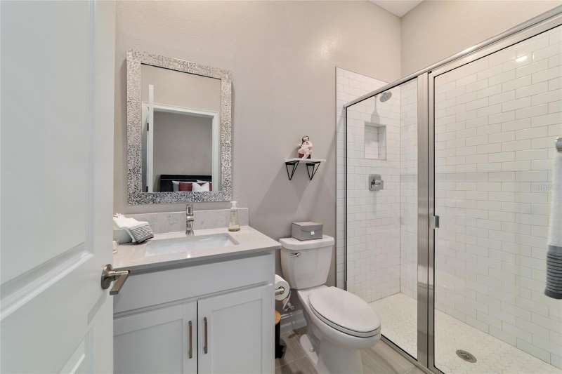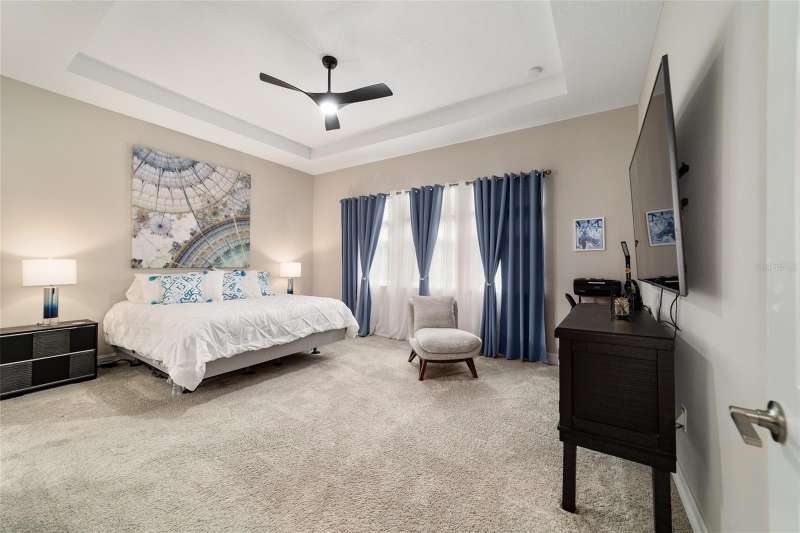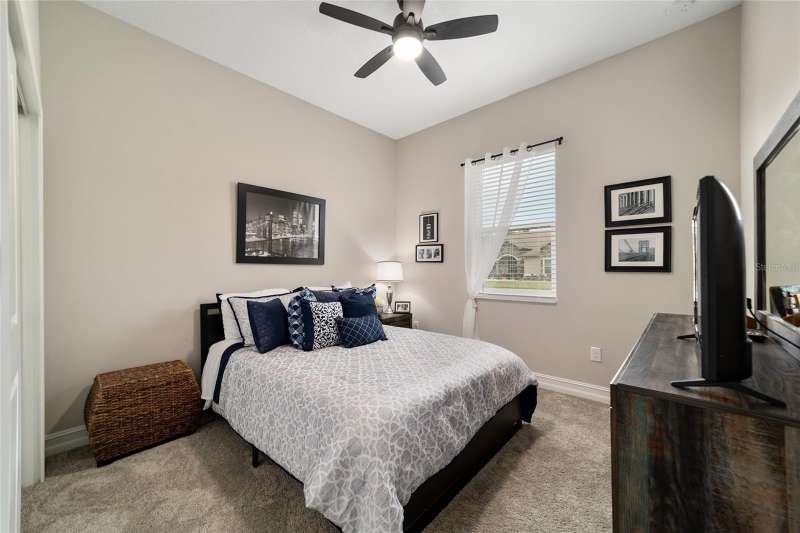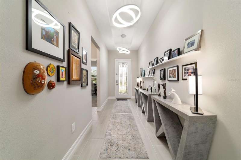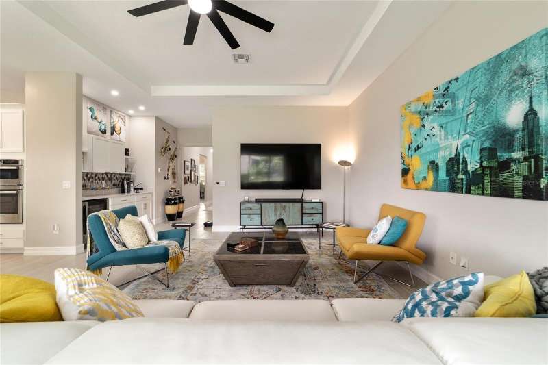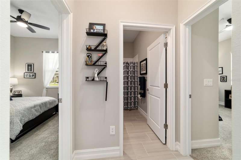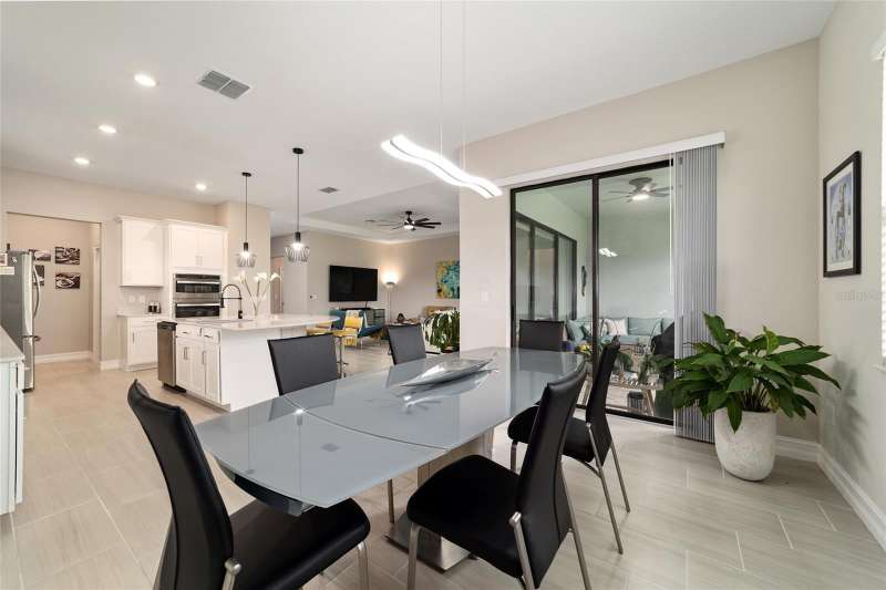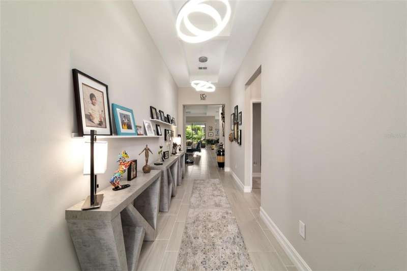 Welcome to your better than new, beautiful spacious Ocala home. This 3 car garage house built in 2022 and located in the desirable gated community of Bellechase is a must see. Situated on a corner lot just over 1/3 of an acre, this home offers a peaceful, nature inspired setting while being just minutes from Ocala’s shopping, dining, medical centers and downtown. Inside, you’ll love the bright open layout with tile floors throughout the main living areas and carpet in the bedrooms. The gourmet kitchen is truly the heart of the home, designed with a large island topped with quartz countertops. The custom tiled backsplash compliments the rare vented hood. It features a walk-in pantry and bonus butlers station with cabinetry, ideal for a coffee bar or prep station with matching tiled backsplash. The kitchen flows seamlessly into the family room and dining area, both with sliding doors that open to the covered patio, creating a natural extension of the living space. The split bedroom floor plan is perfect for family or guests, with two bedrooms sharing a full bath and another bedroom featuring its own private bath, making it the perfect guest suite. The spacious primary suite is a relaxing retreat. The onsuite features updated temperature-controlled faucets, quartz counters, a freestanding tub and a spacious walk-in shower. This home is filled with thoughtful upgrades throughout, including modern lighting, ceiling fans, extra cabinets and shelving. Enjoy the custom bar with LED accent lighting and wine fridge. This home boasts an efficient tankless hot water heater and wireless irrigation system. The 3 car garage features a durable true-grit floor finish with plenty of room for storage or hobbies. Outside, the nicely landscaped yard with upgraded lighting creates a welcoming backdrop for evenings spent outdoors. New gutters were added across the back of the home in October 2025. Living in Bellechase means enjoying beauty, privacy, and security in one of Ocala’s most sought after neighborhoods with sidewalks and walking paths throughout.