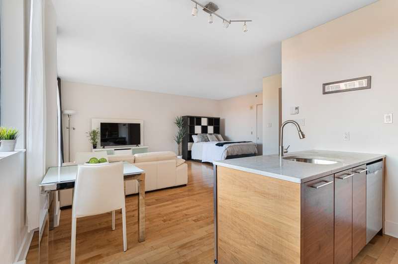 Discover urban living at its finest in this open concept loft apartment with indoor parking, located on the 3rd floor of the prestigious Solano building on the banks of the St-Lawrence, in Old Montreal.