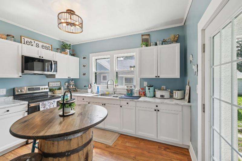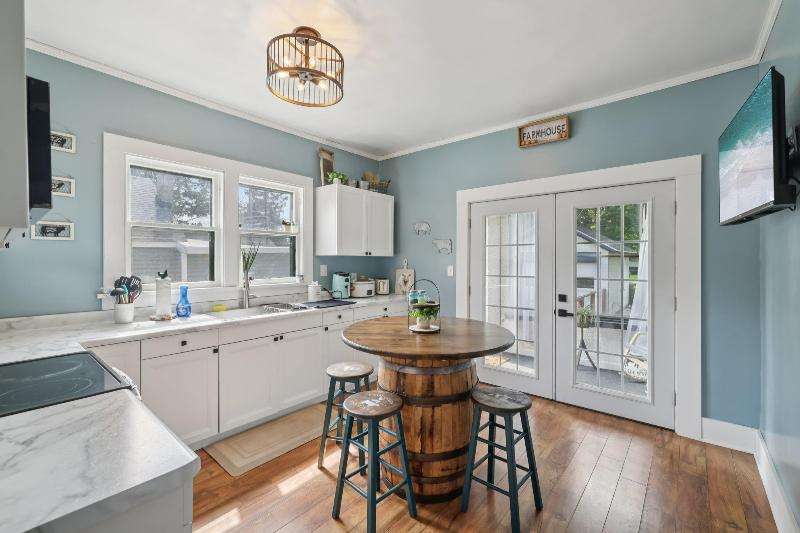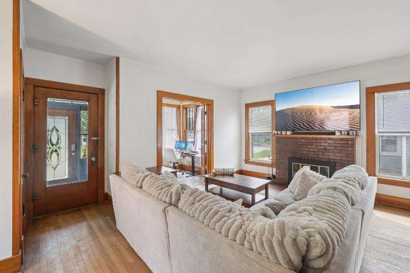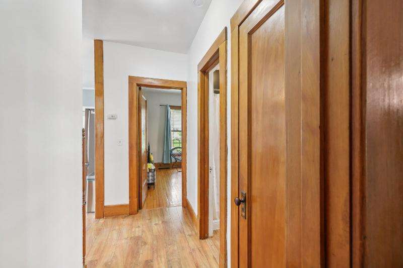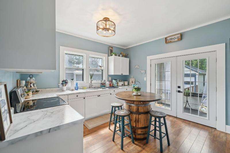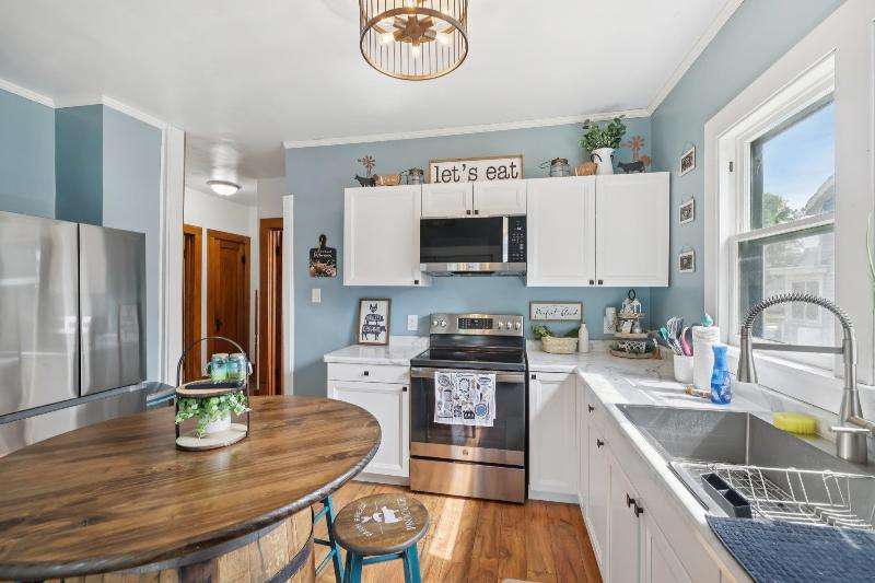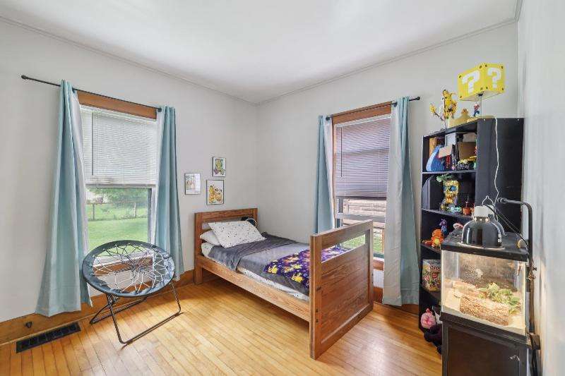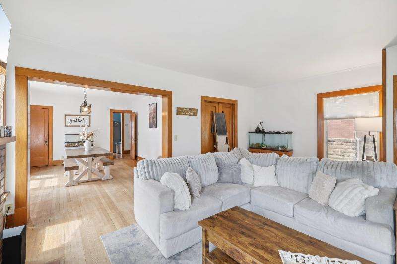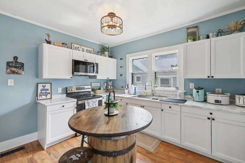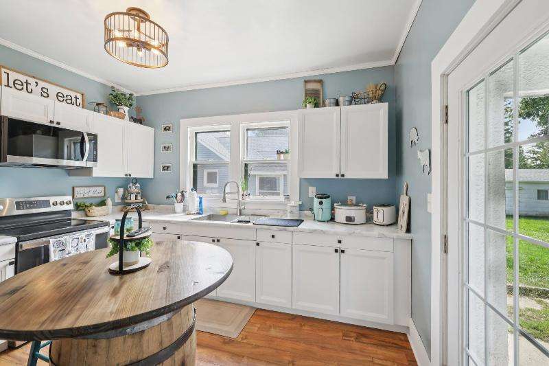 This charming bungalow in Evansville's Historic District blends historic character with modern updates. Original hardwood floors, rich woodwork, and 9 ft. ceilings highlight the main level. French doors open to a front sunroom filled with light, while the dining room features a window seat and space for gatherings. The updated kitchen includes white cabinetry, stainless appliances, and stylish finishes. Upstairs, the finished walk-up attic serves as the spacious primary bedroom with private bath and closet. Additional features include a back sunroom with windows, a front office/den, and a full basement with tall ceilings and plenty of storage. Outside, enjoy the fenced yard, vibrant landscaping, and excellent curb appeal--steps from downtown shops, parks, and schools.