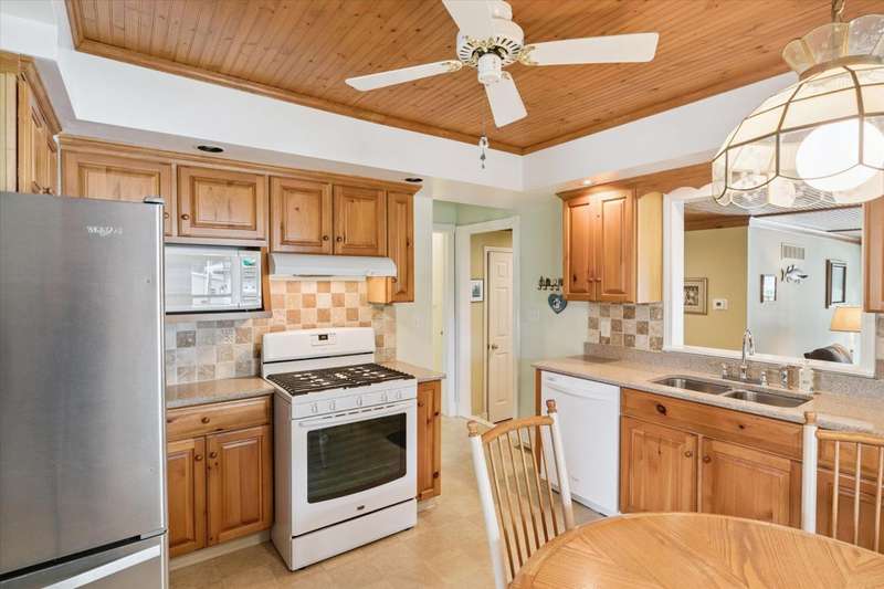 Located just outside of the St. Joseph city limits is where you will find this gem that you can call home. Pride of ownership shows in this home that has been in the same family for generations. The home was built in 1938 with a solid foundation and was remodeled and added on circa 1995-1997. Home has a spacious primary bedroom with a private half bath and the second bedroom is a comfortable size as well. The 25 x 23 SF family room is where you will be spending most of your time. The sliding glass door opens to the deck that overlooks your ravine views. The oversized 2 car attached garage is in exceptional condition with cabinets and benches in place for you. The 11 x 16 dining room offers enough space for a large table when entertaining your family and friends for special events. Off of the dining room is an additional room that can be utilized as an office, den, sitting room or even turned into a third bedroom. The property boarders the ravine to the north for extra privacy. You will cherish your mornings sipping coffee out on the delightful front porch. There are 2 sheds included in the sale. New heat exchanger in 2024, new AC in 2025, new refrigerator and dryer in 2023. Built in antenna in attic and rotator in garage that will stay with the home. Enjoy the best of country living yet you are only a 4-mile drive to downtown beaches, restaurants, shopping and all of the annual activities. A short stroll in the other direction leads you to wineries and the great Southwest Michigan fruit belt.