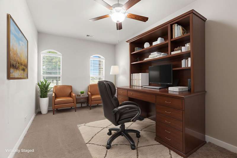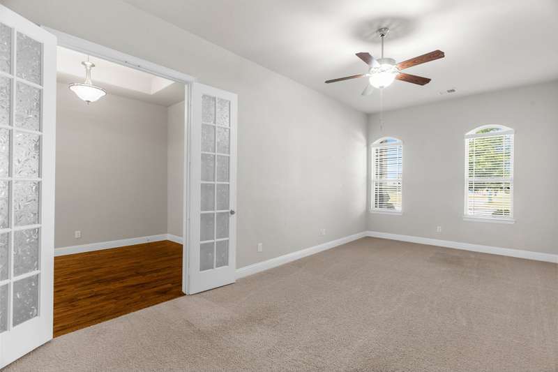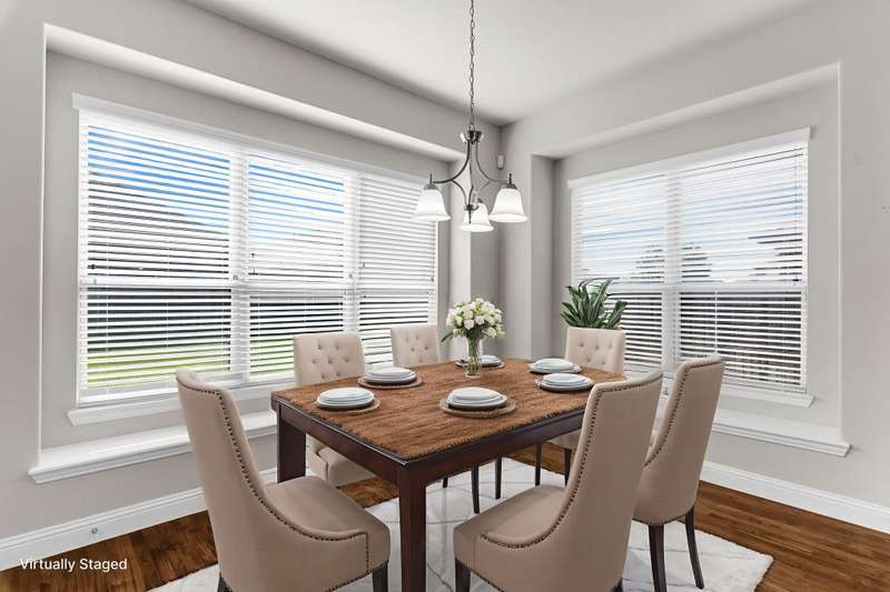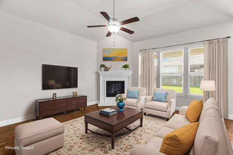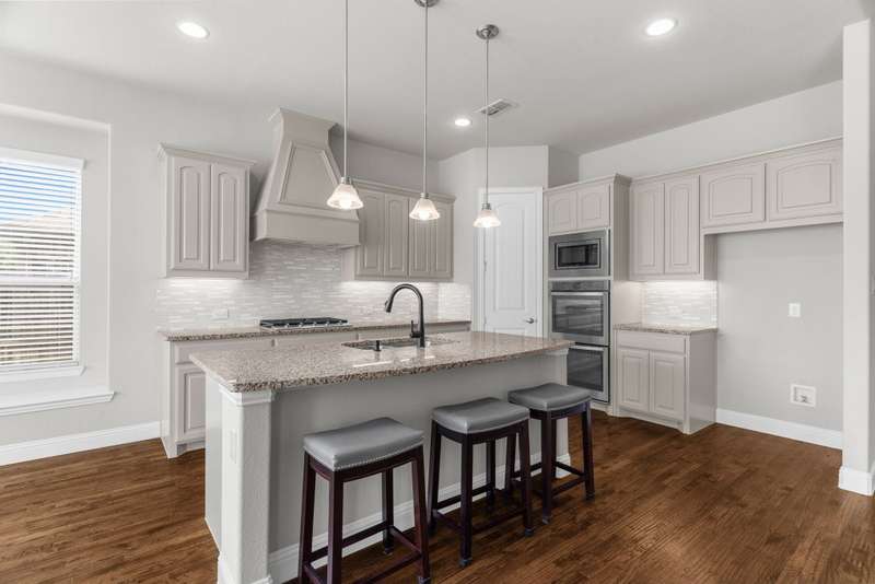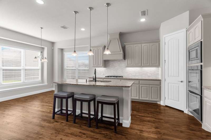 Charming One-Story Windsor Home with Custom Finishes in Anna Town Square. This beautifully appointed one-story residence offers 3 spacious bedrooms, 2 full baths, and an oversized 2.5-car garage with ample extra storage. Step inside to find a warm, inviting open floorplan featuring wood flooring throughout the foyer, dining room, family room, and kitchen. The heart of the home is the gourmet kitchen, complete with a large island, granite countertops, painted cabinetry, stainless steel appliancesincluding double ovens and a Samsung 5-burner gas cooktopideal for the home chef. A cozy breakfast nook with dual window seats adds charm and natural light.The spacious family room boasts an angled fireplace and a wall of windows that frame views of the extended covered patio and large backyardperfect for relaxing or entertaining.Retreat to the oversized primary suite, featuring an ensuite bath with double vanities, a garden tub, walk-in shower, and a large walk-in closet. Two secondary bedrooms are split for privacy and share a full bath.An oversized study with French doors off the foyer provides versatile space that can easily function as a home office, game or media room, fitness studio, craft or play room.Enjoy outdoor living on the brick wrap-around front porch, or take a short walk to the neighborhood pool and park, elementary and middle schools, and on-site daycare facilityeverything your family needs is right here!Don't miss this exceptional opportunity to live in one of Anna's most desirable communities! Conveniently located close to the Collin County Outer Loop for an easy commute to the Dallas Metroplex or Sherman.