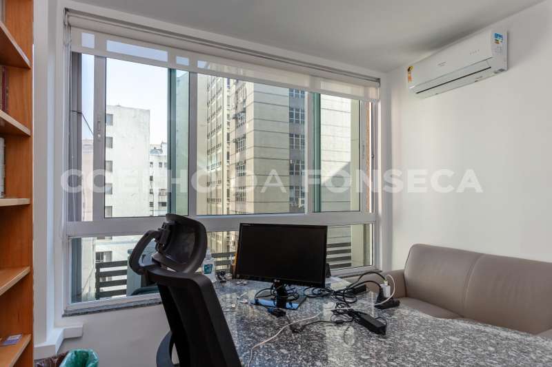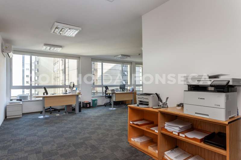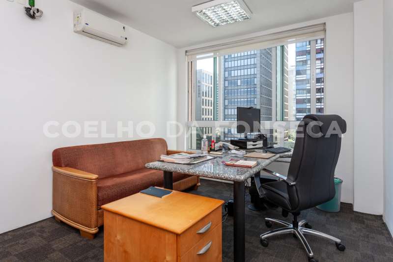 Amplo conjunto comercial com excelente infraestrutura, acarpetada, com iluminação, ar condicionado. Planta com uma recepção espaçosa, duas amplas salas de reunião, uma sala principal central que permite montagens de estações de trabalho, quatro salas executivas, duas salas administrativas. Área de apoio com dois banheiros (feminino e masculinos) ambos com quatro cabines cada, copa e despensa. Edificio icônico construído em 1966 com projeto do arquiteto Severo Villares e retrofitado em 2020, quando ganhou um painel com obra da artista plástica Mirthes Bernardes. Possui portaria 24 horas, recepção e catracas de segurança e três vagas de garagem privativas da unidade.