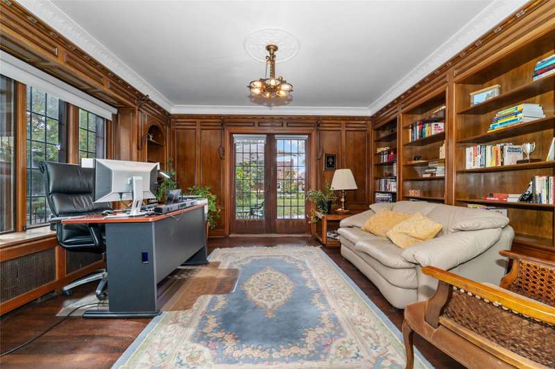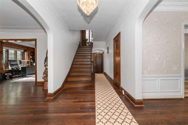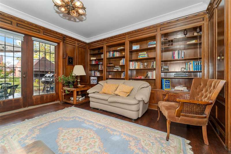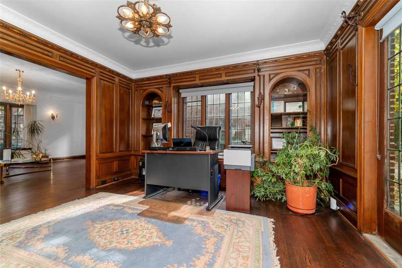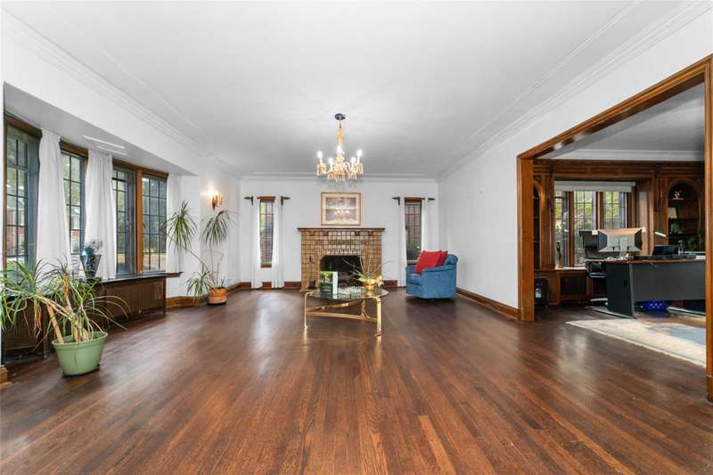 OPEN HOUSE SUNDAY 11/9 from 2-4PM. Historically known as the Arthur J. Lacy House and designed by renowned architect Clarence E. Day, this Sherwood Forest gem blends elegance, history, and family-friendly living. Recent upgrades include refinished hardwood floors on the main level and staircase (2022), a new roof (2022), and fresh interior paint (2025). A slate walkway leads to the ornate entry and stained-glass crest inspired by the RMS Majestic, a detail echoed throughout the home’s original design. Inside, the living room features a grand bay window and a Pewabic tile fireplace mantle imported from England. The executive office offers rich wood details, built-ins, intricate molding, and a striking floral-inspired light fixture. The updated kitchen with marble-finish tile and stainless appliances opens to a breakfast nook and a butler’s pantry for extra storage and prep space. A dramatic brass-banister staircase leads to large stained leaded-glass windows overlooking the backyard. Create a dream primary suite by converting the adjacent bedroom connected to the green bathroom into a walk-in closet. The green bath offers a multi-head shower system while the other has a jetted soaking tub. The in-law suite boasts a massive bonus room and an exceptionally large cedar closet. Enjoy outdoor living on the slate deck and in the fenced yard, perfect for entertaining. The basement provides abundant storage and plumbing for an additional half bath. Located minutes from the Avenue of Fashion, Detroit Golf Club, and Renaissance High School, with neighborhood events and 24-hour private security — this is the one to claim in Sherwood Forest. Don’t miss it! Be sure to check out the video, storybook and smart floor plan to learn more about this beauty! Home may be under surveillance. Information is deemed reliable but not guaranteed. Agent is related to seller.