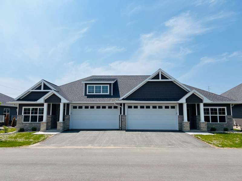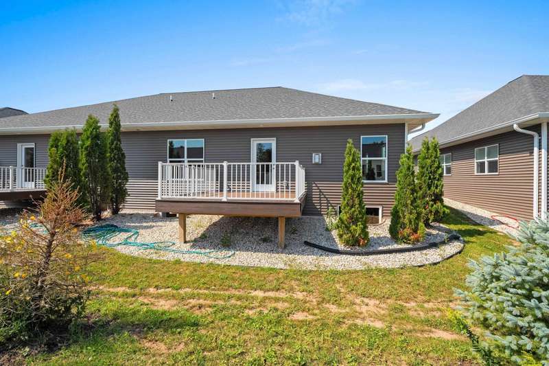 Enjoy carefree living in this beautiful no step zero-entry, side by side condo. Open concept 1-story with spacious great room featuring tray ceiling, large daylight windows, gas FP & door to maintenance free deck. Kitchen offers abundant custom cabinets, quartz counters, tile backsplash & center island. Enjoy the large primary suite with tray ceiling, walk-in closet, dual sinks & walk-in shower. Other amenities include 2nd bedroom/office, first floor laundry & finished lower level with Rec Room, 3rd bedroom & full bath. Photos are similar but may not be exact. Floor plan is the same, but colors may vary.