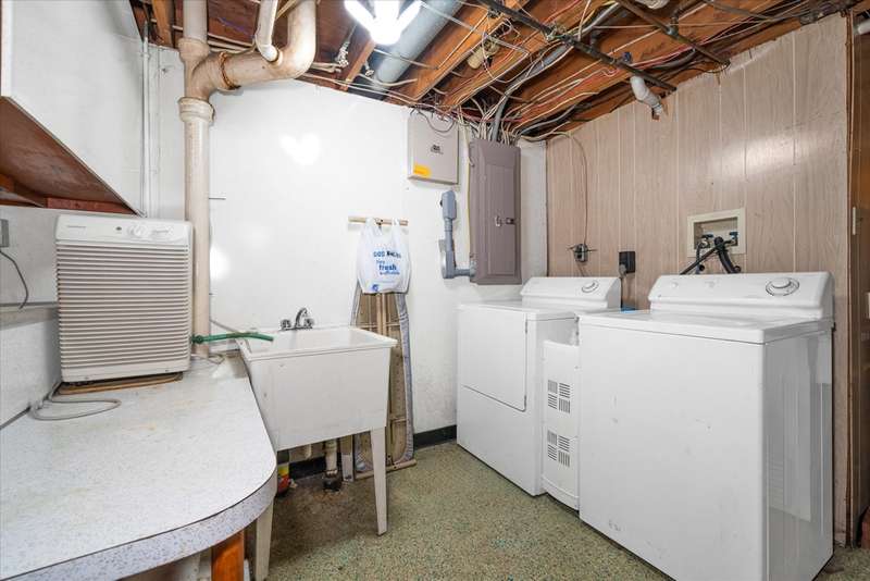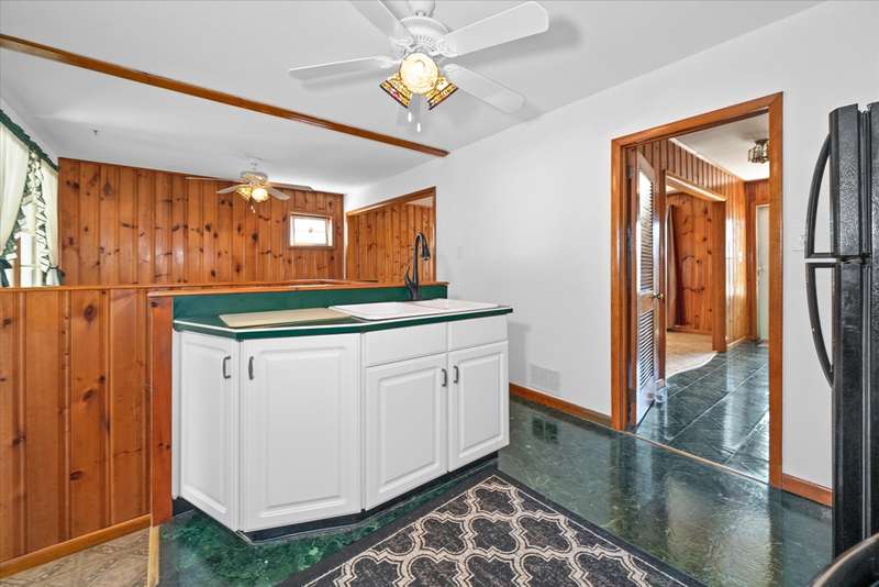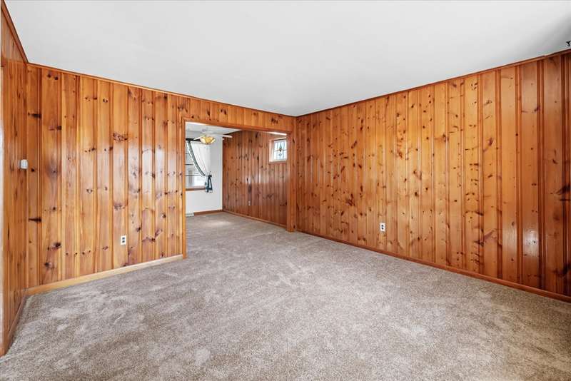 Welcome to 25 Monticello Boulevard in popular, convenient Jefferson Farms! This very well-maintained brick ranch enjoys many special features and improvements, from beautiful tongue and groove knotty pine walls and new carpeting to a huge (15' by 40') cheery rear addition with a vaulted ceiling and a wood-burning stove. The front entrance opens to an entry hall with access to the formal living room and bright well-equipped kitchen with ample recently sanded and painted white cabinetry, a double sink and a ceiling fan. The kitchen is open to the dining room, creating a great flow in the main living areas. Another hall accesses three bedrooms, a full updated bath, lots of closet space and the pull-down attic stairs. The full basement hosts a large finished and carpeted family room with built-ins and a large utility and recreation room with a half-bath, a laundry center and a second fully functioning kitchen area (complete with a vintage eye-level oven). This home enjoys great curb appeal, with hard landscaping, flower beds and a water fountain feature. The spacious flat and fenced rear yard has a large deck and entrances to the detached garage and separate storage unit. Improvements include replacement windows and there's gas heat for winter warmth and central air for summer comfort. This home truly offers lots of living space to configure to suit your personal needs. The large deep drive leading to the detached garage could accommodate many vehicles. So much is on offer here, so close to shopping centers, major highways, public transit and the charming riverfront town of Historic New Castle, where there is a beautiful river walk, lots of special events, great museums and restaurants, tall ship visits, summertime concerts and more. Don't delay to tour this gem and make 25 Monticello Boulevard yours!