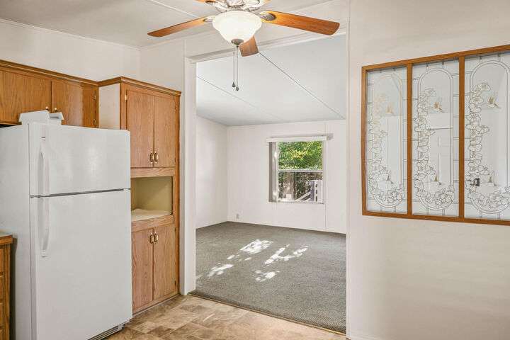 Enjoy stunning views of Mt. McLoughlin from this inviting home at 6850 Downing Rd #65A in Central Point. Ideally located next to a playground and open pastures, this property offers a peaceful, scenic setting with room to breathe. The fenced lot is one of the biggest in the park. The home features a light-filled living area, functional kitchen, and cozy layout perfect for everyday living. Relax on the front porch while taking in the mountain views, or enjoy the quiet comfort of this well-maintained community. Conveniently close to shopping, schools, and I-5 access. A rare opportunity for affordable living in a beautiful location!