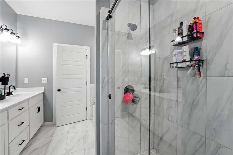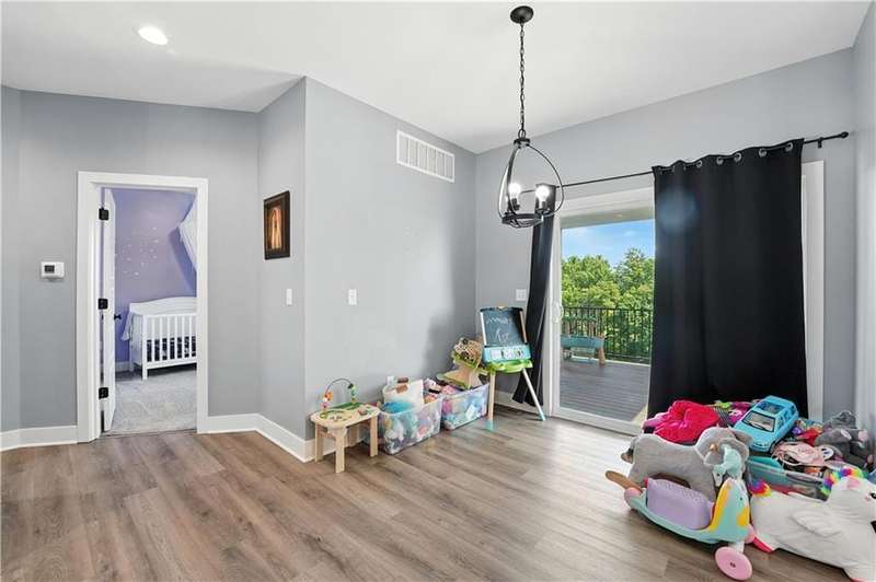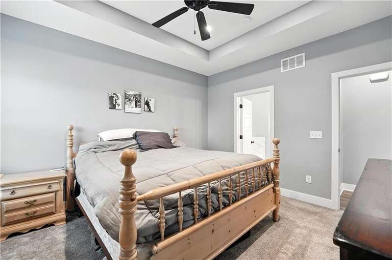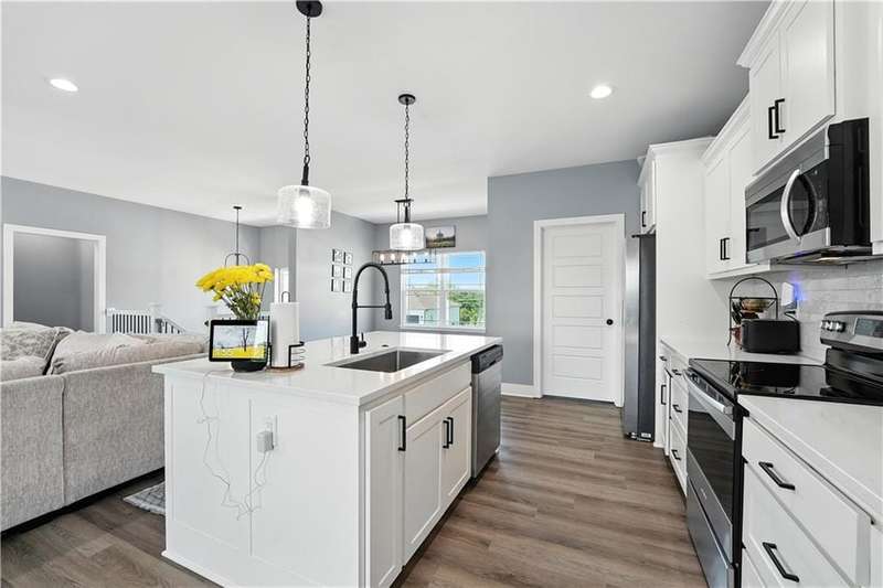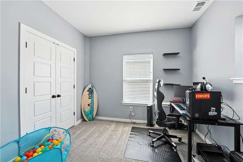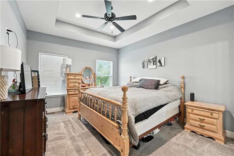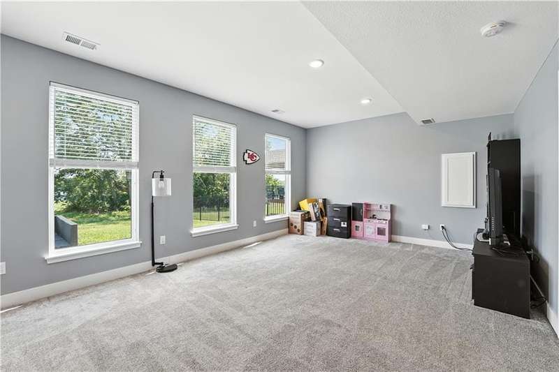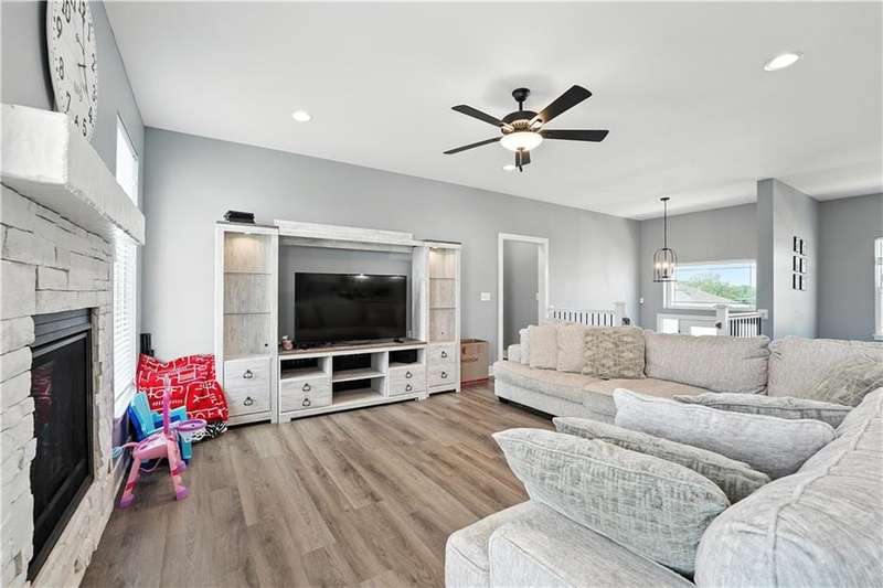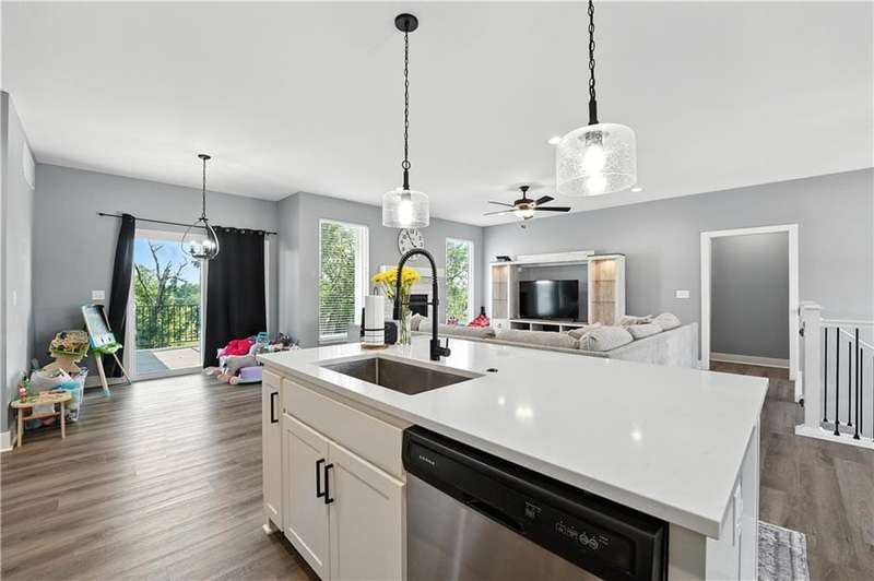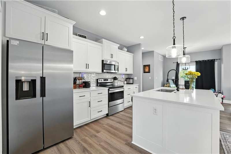 Welcome to this LIKE NEW raised ranch in Harrisonville's best neighborhood! Offering 4 bedrooms, 3 full baths, and a rare 3-car side-entry garageall on a spacious corner lot backing to peaceful green space. Built in 2021, this home features an open floor plan with over 2,000 finished square feet. The kitchen impresses with a large center island with bar seating, quartz countertops, custom soft-close cabinetry, tile backsplash, and a stylish barn sink. Enjoy natural light streaming through the floor-to-ceiling windows in the great room, which opens to a covered deck ideal for relaxing or entertaining. Off the kitchen, enjoy 2 dining areas and convenient laundry room with storage space. The primary bedrooms wows, featuring a tiled walk-in shower, jetted tub, double vanity, and a generous walk-in closet. Two additional bedrooms and another full bathroom are located on the main level, while the finished lower level includes a second living area, 4th bedroom/office, and a 3rd full bathplus walk-out access to the patio. Neighborhood walking trails and a serene community lake add to the appeal of Burris Ridge. Dont miss your chance to have modern conveniences with small-town charm!