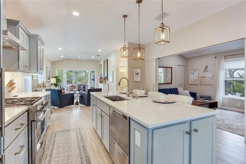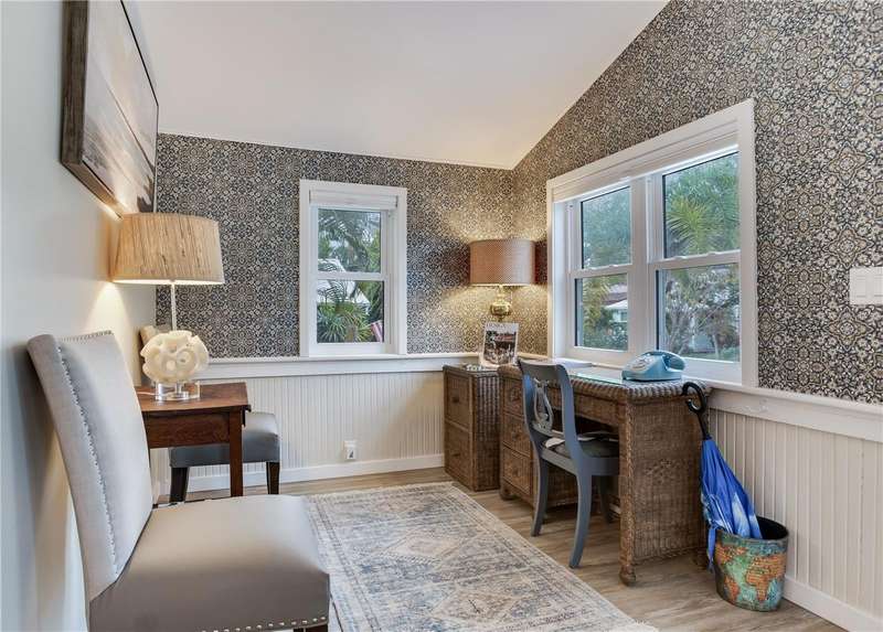 CHARMING DOWNTOWN SARASOTA COTTAGE WITH GUEST HOUSE | WALK TO THE BAYFRONT & MARINA Discover the perfect blend of historic charm and modern luxury at 652 Ohio Place, nestled in the heart of downtown Sarasota’s coveted Laurel Park district. This beautifully remodeled 2-bedroom, 2-bath main home plus detached guest cottage offers an ideal combination of elegance, comfort, and versatility — perfect for a primary residence, seasonal retreat, or income-producing opportunity. Step inside the light-filled main home, where vaulted ceilings, designer lighting, and custom finishes create an inviting coastal aesthetic. The gourmet kitchen is the showpiece of the home, featuring quartz countertops, soft-close cabinetry, a large center island with seating, stainless-steel appliances, and a stunning tile backsplash. The open-concept layout flows seamlessly into the dining and living areas, complete with a cozy fireplace and glass doors leading to the private screened-in porch—an ideal space for relaxing or entertaining. The guest cottage provides incredible flexibility, complete with a kitchenette, full bath, and spacious sleeping area — perfect for visiting guests, extended family, or use as a private studio or home office. Outside, enjoy the low-maintenance tropical landscaping, private fenced yard, and charming paver patio shaded by mature trees. With its prime location just minutes from downtown Sarasota, Marina Jack, Bayfront Park, and Siesta Key’s white sandy beaches, this property truly captures the essence of coastal city living.