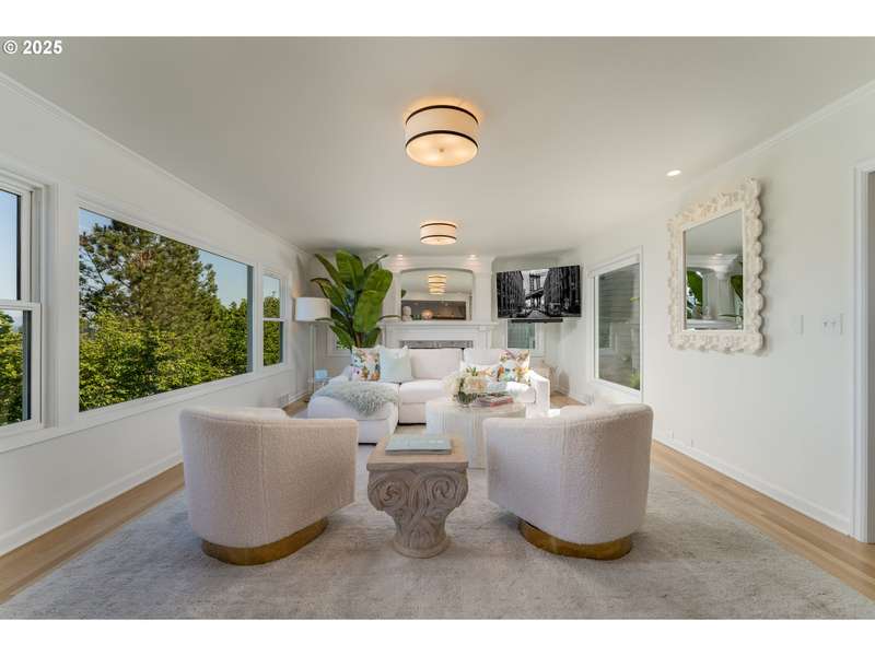 NEW PRICE! OPEN SUNDAY OCT 5th 10:00am-12:30 pm This beautifully remodeled home offers stunning panoramic views of Mt. Hood, St. Helens, and the Willamette River from multiple rooms and the expansive back deck. Relax in the large indoor sauna. Lower level could be remodeled to add bathroom. Has separate entrance for a possible rental. Situated on a peaceful, private dead-end street, providing a perfect blend of tranquility and convenience.A major quality remodel was completed in 2022, updating the home with modern finishes and details. A new HVAC system installed in 2023 ensures year-round comfort. The chef’s kitchen, complete with a large pantry, is perfect for preparing gourmet meals and entertaining, while the easy-care landscaping with turf and a fenced yard makes outdoor maintenance a breeze.The main floor features a spacious living room with a cozy fireplace and large windows with breathtaking views. The dining area opens to the fantastic deck, which is ideal for relaxing or entertaining in a serene setting. A full bath and a bedroom on this level provide easy accessibility and convenience for everyday living.The luxurious primary suite awaits on the second floor, with a designer bathroom and a spacious walk-in closet. The adjacent bedroom is a suite with a bathroom, offering a private retreat for guests or family members.The lower level offers even more living space, with a large family room and another fireplace, perfect for cozy evenings or gatherings. Additionally, a large room that could serve as an office, fourth bedroom, art studio, or playroom, gives you endless possibilities to tailor the space to your needs.A large two-car garage provides plenty of storage and a dedicated laundry area, adding to the home’s functionality.Just minutes from parks, trails, shopping, hospitals, and transportation, this home offers a private retreat and convenient access to all that Portland has to offer.Sit, relax, and enjoy nature all around you!