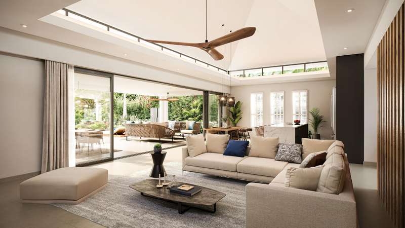 Nestled within lush tropical landscaping, the Lagoon Villas embody a refined interpretation of contemporary island living, blending timeless elegance, privacy, and a deep connection to nature. These stylish residences feature a modern tropical design that gracefully combines clean architectural lines with natural materials, offering a serene and elevated lifestyle. Each villa opens onto a private landscaped garden with a stunning infinity pool and a large outdoor terrace, ideal for entertaining or simply unwinding in the balmy island climate. Inside, spacious living areas are flooded with natural light thanks to floor-to-ceiling openings that create a seamless transition between indoor and outdoor spaces. The open-plan layout includes a welcoming lounge, dining area, and a sleek modern kitchen designed for comfort and conviviality. Each villa offers: A luxurious master suite with en-suite bathroom, walk-in closet, and direct access to the terrace Two or three additional bedrooms with private or shared modern bathrooms An optional office or TV lounge depending on the configuration A fully equipped contemporary kitchen Laundry and storage areas The interiors are finished in soft, neutral tones, with polished concrete-effect floors, natural timber accents, and minimalist stone features. This sophisticated aesthetic reflects the essence of tropical living—simple, natural, and elegant. As part of the secure and vibrant Mont Choisy La Réserve community, Lagoon Villa residents enjoy access to an extensive range of world-class amenities: An 18-hole championship golf course A leisure and wellness centre with gym, yoga, sauna, tennis and paddle courts, and solar-heated pool A 50-hectare nature reserve with walking trails, native wildlife, and an organic farm Gourmet dining at the renowned La Potinière Club House restaurant Direct access to Mon Choisy Beach A vibrant smart city offering medical facilities, shops, international schools, and business infrastructure These villas are available to foreign buyers and qualify for Mauritian residency under the Smart City Scheme. Whether for permanent living, a holiday home, or a high-value investment, the Lagoon Villas offer a unique opportunity to enjoy a peaceful, luxurious lifestyle in one of Mauritius’ most sought-after coastal locations.