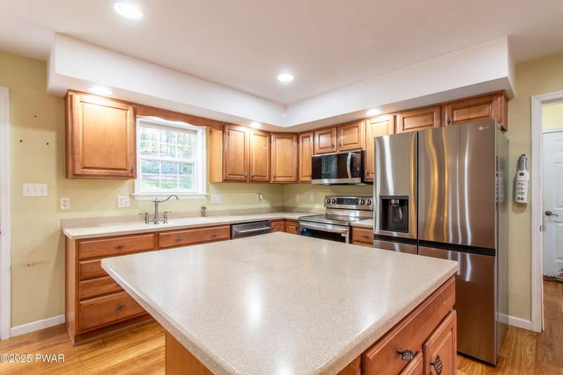Perched High Above Prompton with Stunning Mountain Views!This spacious Center Hall Colonial, set back off a long paved driveay, offers classic charm, privacy and endless potential. Step inside to find beautiful hardwood floors and a versatile layout, featuring four formal bedrooms, 3 with walk-in closets, and a luxurious primary suite conveniently located on the main floor.Accommodate family and friends with an eat-in kitchen complete with island, Stainless steel appliances and a sunny breakfast area, perfect for casual meals, plus a formal dining room complete with a Great Gatsby-esque chandelier that is ideal for entertaining. The living room features an inviting propane fireplace with an adaptable amount of space for a plethora of layout options. Relax in comfort of central A/C and peace of mind with a full home generator. A large unfinished basement provides ample room for storage or future expansion (half bathroom already in place!) while the two-car attached garage is complemented by an additional two-car accessory building with an apartment setup above-- with some work, this could be perfect for guests, extended family, or rental income. With 4 total garage bays, and generously sized driveway, you'll have room for boats, cars, snowmobiles or whatever toys you have! Nestled on a private, elevated lot, this home enjoys breathtaking mountain views, a fully fenced backyard (for babies and fur babies alike), and a serene, secluded setting while still being close to town. Conveniently located just minutes from Prompton State Park for hours of recreational fun including lakes, trails and disc golf and the cute town of Honesdale featuring shopping, breweries and creature comforts. This property also offers easy access to Route 6 and Wayne Memorial Hospital, making it an excellent commuter location as well as a peaceful retreat.A rare opportunity to own a spacious home with exceptional privacy, flexible living options, and a prime location!