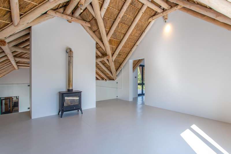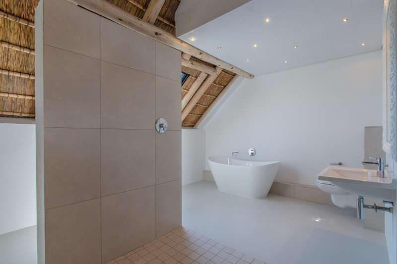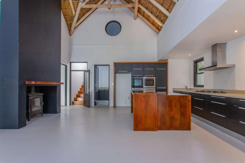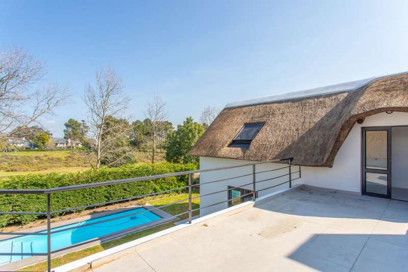 This beautiful home features excellent flows and panoramic views of the stunning Simonsberg Mountain range and golf course. Raw, natural elements are balanced by the warmth and rich colors of the exposed wooden beams and thatched roof ceilings. The home offers a multitude of excellent living and entertainment spaces, which open onto a U-shaped, wind-protected courtyard with a swimming pool. The ground floor has a delightful, enclosed braai/barbecue family room. Upstairs, a wrap-around deck provides an additional braai area with magnificent views. This home has five spacious bedrooms, all with en-suite bathrooms and high ceilings. The Pearl Valley Club Membership is excluded in the rental price.
