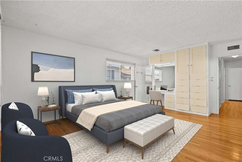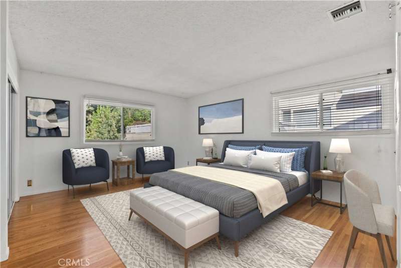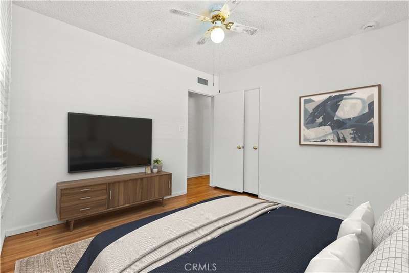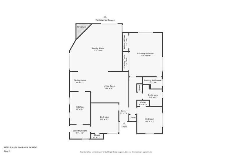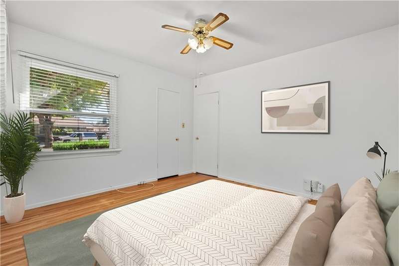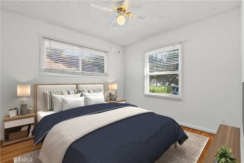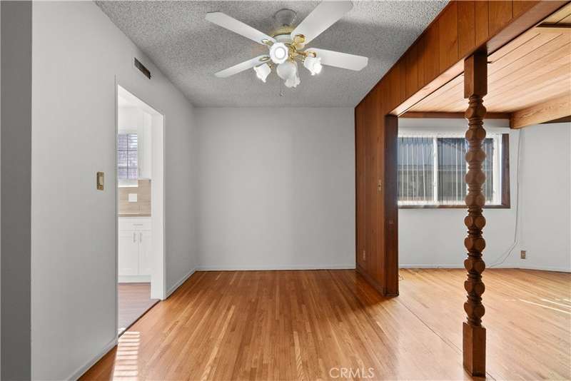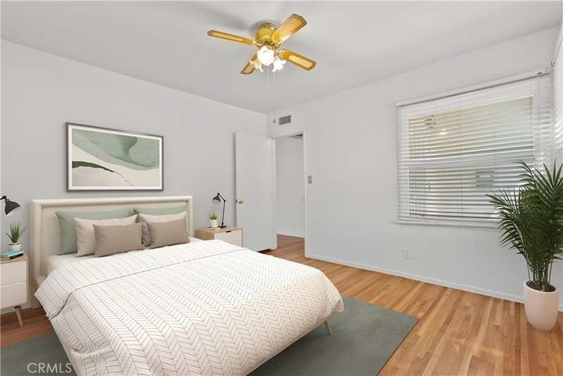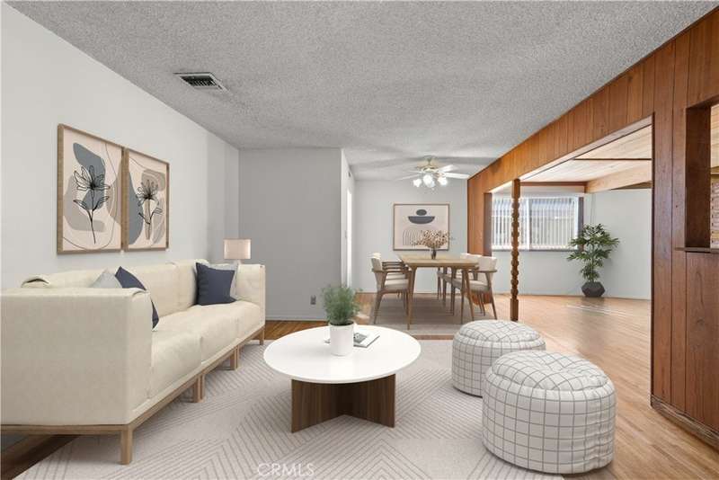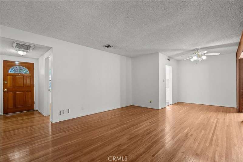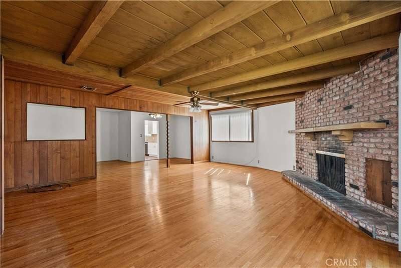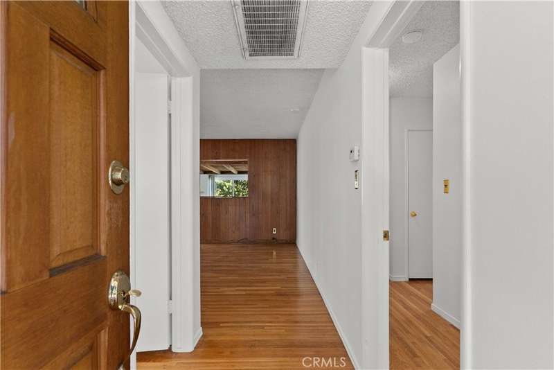 Tucked away on a quiet, tree-lined street in the sought-after Granada Hills neighborhood, this delightful mid-century home offers the perfect combination of vintage character and modern upgrades. Surrounded by a friendly, well-kept community, this home is ideal for comfortable family living. A welcoming front porch leads into a warm and inviting interior featuring hardwood floors, abundant natural light, and timeless architectural details throughout. With three bedrooms and two bathrooms, this home provides generous space for both relaxing and entertaining. The heart of the home is the remodeled cook’s kitchen, showcasing recessed lighting, crisp white shaker cabinets, quartz countertops, and a classic subway tile backsplash. Quality appliances include a gas range with vent hood, dishwasher, and refrigerator. Just off the kitchen is a functional laundry room with storage and access to the side yard. The cozy living room connects seamlessly to a dedicated dining area, accented by hardwood flooring and a ceiling fan light fixture—perfect for daily meals or festive gatherings. A spacious family room features wood-beamed ceilings, a brick fireplace, and sliding doors that lead to a private backyard, blending indoor comfort with outdoor living. The primary bedroom offers hardwood floors, dual closets, and an en-suite bathroom with a tiled stall shower and separate vanity. Two additional bedrooms are bright and well-sized, each with ceiling fans, hardwood floors, and ample closet space. A full hallway bathroom with a tiled shower-over-tub and a vanity serves these rooms. Step outside to the private backyard with a sprawling lawn and mature greenery—an ideal space for entertaining, play, or peaceful retreat. The extended concrete driveway and detached two-car garage offer abundant parking and storage. Thoughtful upgrades include central air and heat, dual-pane windows, and mostly copper plumbing. The large backyard with detached garage provides excellent potential for a freestanding Accessory Dwelling Unit (ADU).Conveniently located near schools, shopping, dining, and freeway access, this move-in ready gem combines classic style with today’s comforts—ready for you to call home.