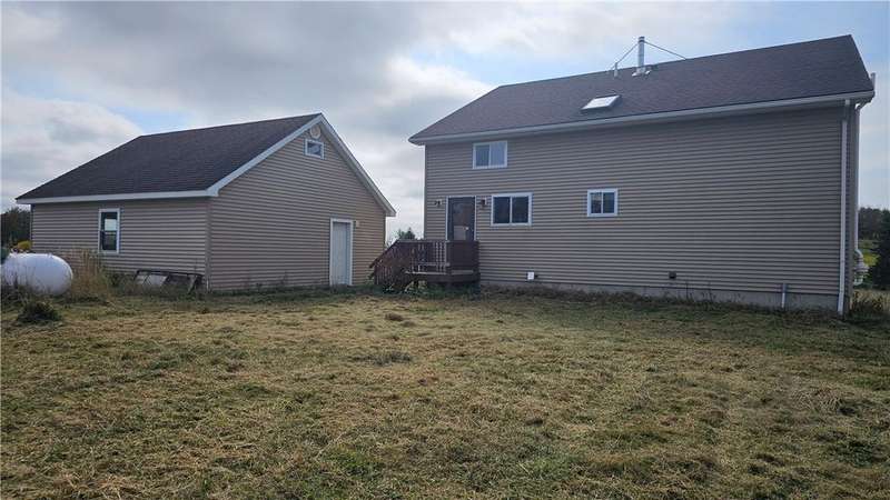 12.84-acre property with 381' of frontage on Keach Road and 447' of frontage on High Bridge Road. This property includes multiple outbuildings suitable for livestock, equipment, or storage. The 4-bedroom, 2.5-bath residence offers over 2,000 sq. ft. of living space and is set to maximize western views, providing privacy and a country setting. Solar power and a home generator keep you prepared for outages and those increasing utility bills. The main level features a spacious kitchen with ample cabinetry, dining area, and living room designed for comfort and functionality. A first-floor laundry and half bath add convenience. The second level includes four bedrooms and two full baths, including a primary suite with private bath. Ample storage throughout with closets and basement space.The acreage provides open fields, wooded areas, and flexible options for agricultural, hobby farm, or recreational use. Outbuildings offer versatility for animals, tools, or additional storage. Property combines residential living with productive land and accessibility.