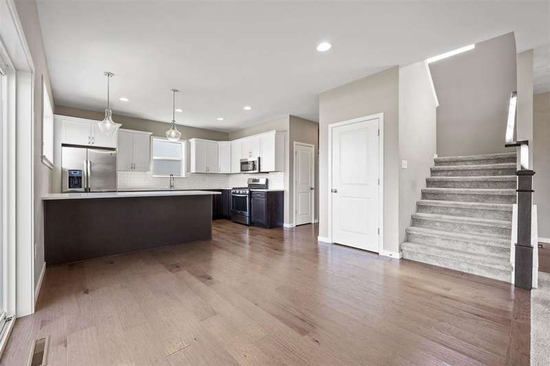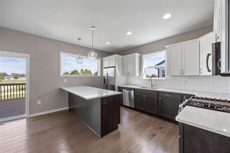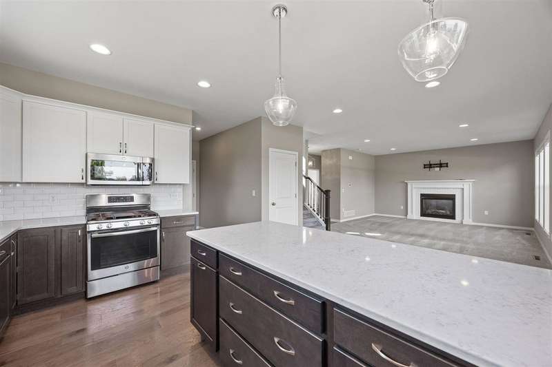 Park views are aplenty in this wonderfully maintained 2 story home situated on a beautiful lot in an amazing neighborhood! This floor plan boasts an open main level with tall ceilings, hardwood floors, white trim throughout, huge kitchen with two-tone cabinets, quartz countertops, tile backsplash, long center island with breakfast bar, and pantry. There also is a large dining area, family room with white tiled gas fireplace, separate office perfect for those working at home, full laundry room, and convenient half bath! The upper level has a spacious primary suite with dual vanity and walk in closet, 2nd and 3rd bedrooms and another full bath. The lower level is poised for future expansion and could have a rec/family room, fourth bedroom and yet another full bath! Outside is nicely landscaped and has a large deck overlooking the park and walking trail! You’ll love all that Mt Vernon has to offer!!