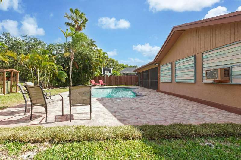 BUY WITH NO MONEY DOWN!!! This amazing 4 bed 2 bath waterfront home with no HOA has an open floor plan with high vaulted wood ceilings and abundant natural light. Boat Parking - dedicated concrete pad for your boat on the side of your home. Solar-Powered system covers 100% of electricity. Saltwater Pool is a low-maintenance, luxurious swimming experience with a full-size basketball goal. Covered back patio with a tropical fish tank and plenty of seating for all of your entertaining needs. 4th bedroom is a converted garage with extra space for an office or game room. Can easily be reverted back to a garage. Prime Location, only three houses down from a beautiful local park kids will love! Just minutes away from 95 and the Turnpike.