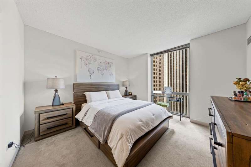Discover this light-filled 2 bed / 2 bath corner residence at the desirable Park Millennium. Floor-to-ceiling windows showcase sweeping city and park views, filling the home with natural light and creating an uplifting atmosphere - making even rainy or snowy days feel special. The open living and dining space perfect for entertaining or cozy nights in, while the modern kitchen, spacious bedrooms and in-unit laundry make everyday living comfortable and practical. The primary suite offers double closets, one of which is a walk in and can easily accommodate a king bed. The second bedroom can accommodate both a queen bed and desk. At Park Millennium, resort-style amenities make city living effortless: swim laps in the indoor pool, relax in the hot tub or sauna, work out in the expansive gym, or enjoy summer evenings grilling on the sundeck. The building also offers a business center, party room, 24-hour door staff, on-site dry cleaners, and direct connection to the Pedway system for easy all-weather access to shopping, dining, and public transportation. The Lakeshore East location is unbeatable, steps to Michigan Avenue, Millennium Park, Mariano's, Wildberry Cafe, the Riverwalk, lakefront paths, museums, theaters, and more. From morning coffee at a local cafe to evening strolls along the lake, this home puts the best of Chicago right outside your door. HOA includes heat, air, cable, internet, and amenities. Leased parking available. This is more than a condo, it's a lifestyle in one of Chicago's most vibrant and connected neighborhoods.