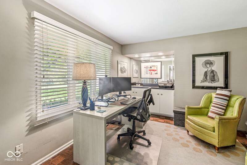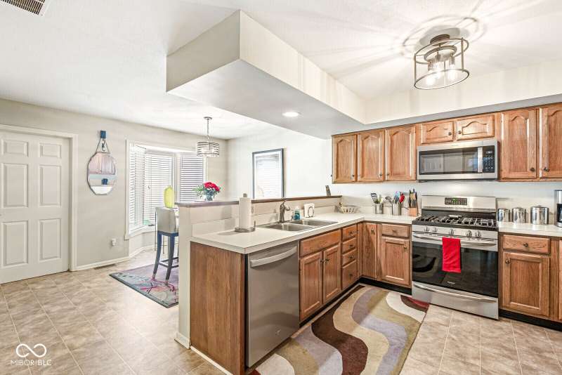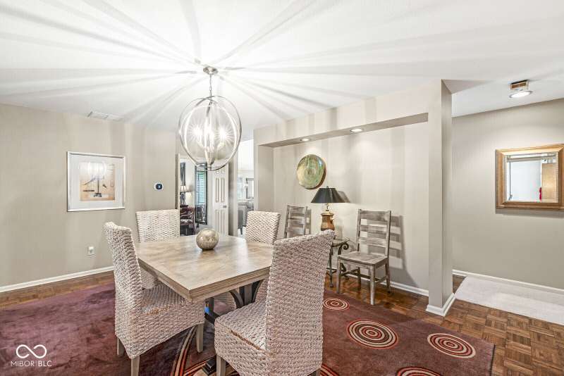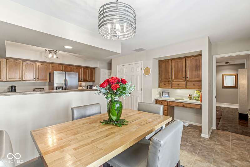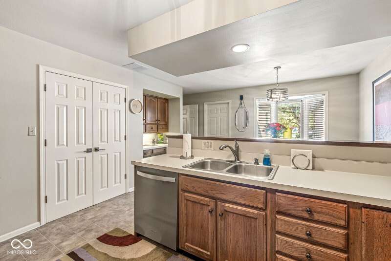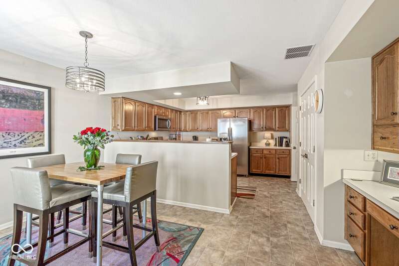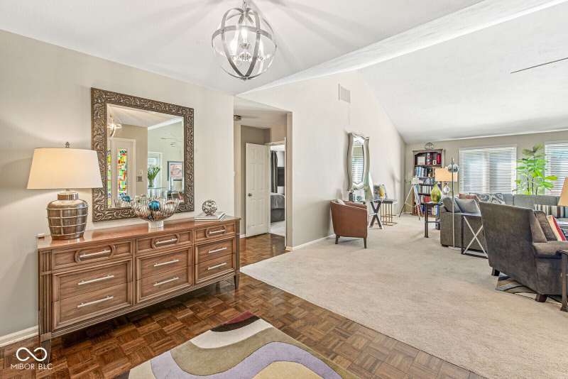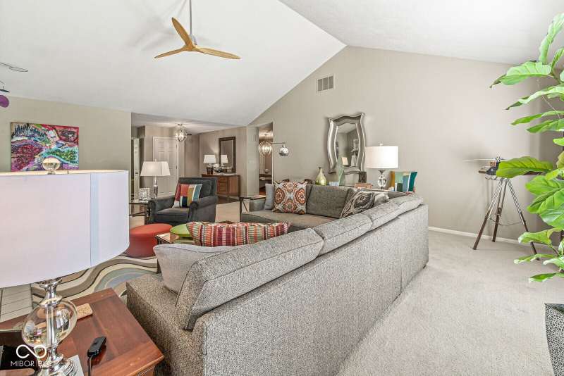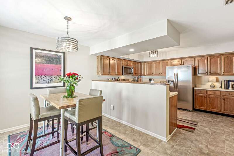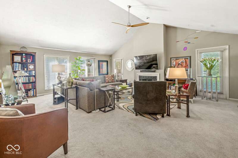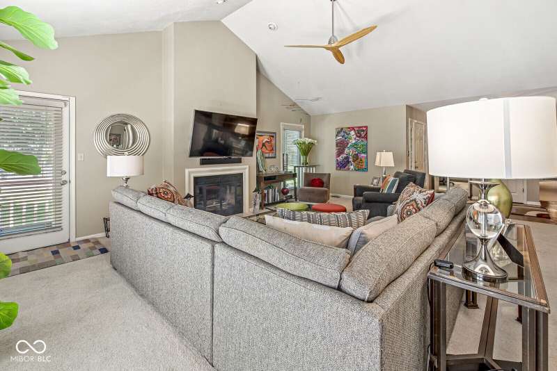Serene Living in Holcomb Estates - Now Available! Discover this impeccably maintained condominium nestled in the sought-after Holcomb Estates community. Featuring 2 spacious bedrooms plus a versatile den complete with a working wet bar, this home offers comfort, charm, and functionality. Step into the expansive living room with soaring vaulted ceilings and a cozy gas fireplace-perfect for relaxing or entertaining. The formal dining room showcases elegant parquet flooring, while the well-appointed kitchen includes all appliances, generous cabinet space, and a sunny breakfast nook. Outside, enjoy tranquil surroundings with lush meadows, scenic walking trails, cascading waterfalls, mature trees, and direct access to the White River-creating a true retreat just minutes from city conveniences. Don't miss this rare opportunity to own a peaceful haven in a prime location. Schedule your showing today!