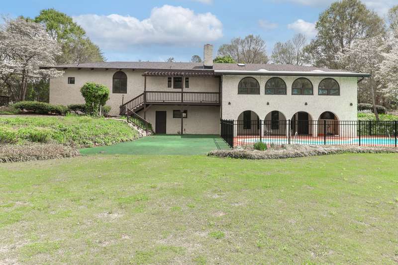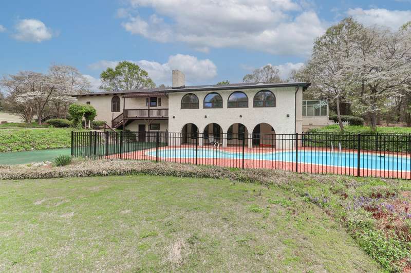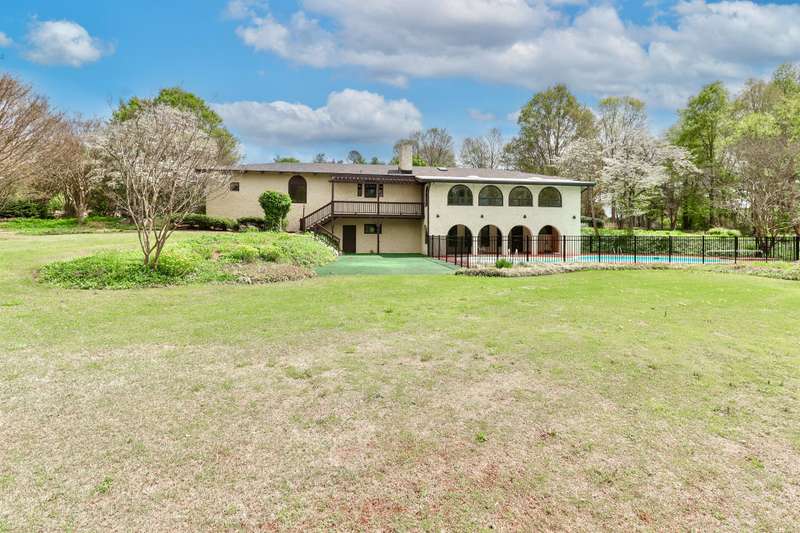 Spanish-Inspired Estate in Statesville Country Club, Nestled on 1.14 acres blends timeless charm with modern updates. Renovations in 2025 include a new roof, new paint, updated flooring throughout most of the home, and fresh tile on the inviting front patio. Shade trees and beautifully updated landscaping enhance the curb appeal, lush Bermuda grass adds a vibrant touch to the grounds. Great room includes a pretty stone fireplace w/ gas logs. Stylish kitchen flows to the dining room?ideal for entertaining. The primary en suite is a retreat with its own sunroom, Natural light throughout the home. Three bedrooms are conveniently located on the main floor. The fully finished walkout basement offers a large family room, game room, a fourth bedroom, and a full bath with direct access to the pool?perfect for entertaining. Back deck overlooks a sparkling pool and a picturesque pond, Storage and upgrades throughout, this home offers comfort, space, and style in an unbeatable setting.