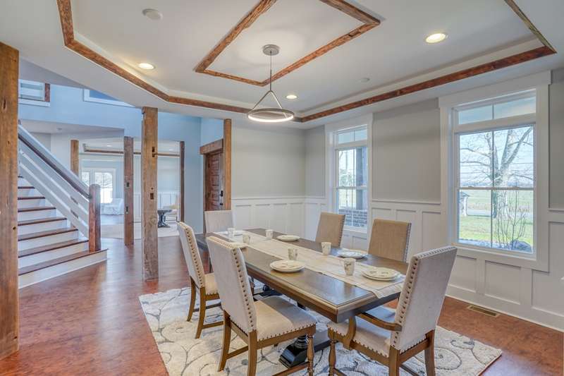 Welcome to Blackston Cove! This exquisite home offers a sprawling 5,314 sq ft on the first and second floors, along with an additional 1,400+ sq ft in the finished basement and 1,300+ sq ft unfinished basement. From the moment you pull into the driveway of this 1-acre parcel, you'll be captivated by the beautiful front porch and the convenience of an oversized 3-car garage. Step inside, and you'll be greeted by a grand 2-story foyer with a custom staircase, setting the tone for the elegance that lies ahead. To the right, a large living room leads to a versatile sunroom, offering endless possibilities for use. On the left, a spacious dining room with custom trim and a butler's pantry featuring a wet bar await your gatherings. As you venture further, an enormous 2-story family room with a stunning 2-sided fireplace invites you to relax and unwind. The back east wing of the home presents an in-law suite with a full private bath, while the opposite side showcases an amazing kitchen, hearth/breakfast area, mudroom, laundry, and a hidden wine closet—truly a dream come true. The second floor is equally impressive, featuring 4 large bedrooms, including a princess suite and a Jack and Jill bath. The owner's suite, a vast 25 x 19 space, comes with a gracious sitting area and a luxurious owner's bath with a walk-in closet that's sure to impress. This home is a masterpiece of modern farmhouse design, meticulously planned and crafted. From the handcrafted doors to the custom-burned wooden staircases and columns, every detail speaks of superior craftsmanship. The decor is simply stunning, leaving you in awe at every turn. Words can only do so much justice to this remarkable home; you must experience it for yourself. Come and see this beauty with your own eyes, and you'll understand why it's a must-see. Don't just take my word for it—schedule a tour and witness the magnificence of this custom home at Blackston Cove!