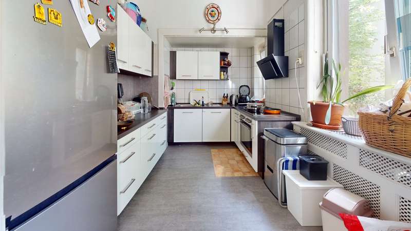 This townhouse is located in an upscale and urban residential area in the Westend, close to Holzhausenpark and is surrounded by old buildings and other beautiful townhouses with gardens. The total area of approx. 240 m² is divided into two residential units, each with approx. 80 m² of living space, and a further unit, previously used commercially as a law firm, also with an area of approx. 80 m². The first floor offers a bedroom, a bathroom with bathtub and a spacious living/dining area with access to the terrace and the garden, which would like to be lovingly laid out and landscaped. On the second floor there are three rooms as well as a kitchenette and a guest WC. This floor, with an area of around 80 square meters, was previously used commercially and continues to be ideal as an office or workspace, but can also be supplemented with a bathroom and used as another two-room apartment after consultation with the building authorities. In addition to the bedroom, the bathroom with bathtub and separate shower and a cozy living/dining area, the second floor also has a storage/dressing area as well as access to the attic with a wonderful roof terrace. The attic can also be converted after consultation with the building authorities to create additional living space. Original stucco and many other stylistic elements give this property a historic flair. This charming property offers lovers of old buildings the opportunity to create a distinctive home in the middle of the popular Westend district through a loving renovation. In addition, the division into several units opens up a wide range of rental options for investors.