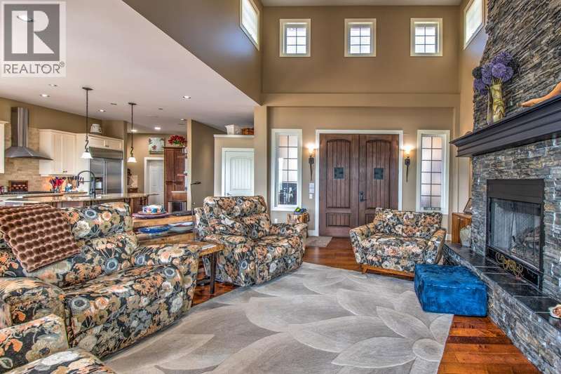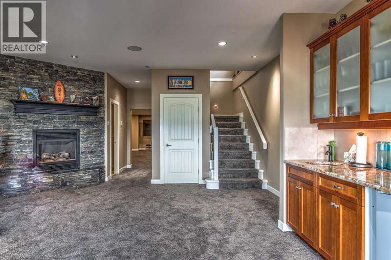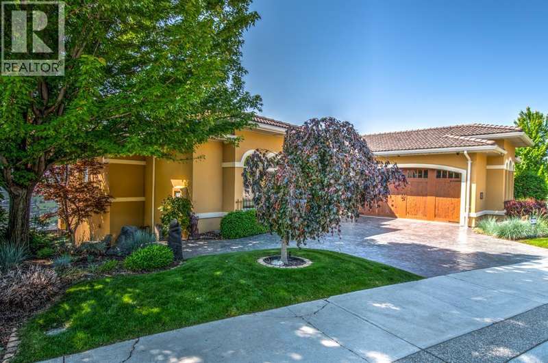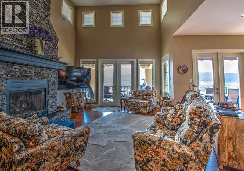 Selling $129,000 Below Assessed Value!! Beautiful Tuscan-Style Architecture with postcard views of Okanagan Lake and numerous upgrades! This captivating 3 Bedroom + Den (potential 4th Bedroom), 4 bath walkout Rancher features over 3900sq/ft of luxurious geothermal heated and cooled space. Upon entry to the courtyard through the new $10,000 custom doors you have direct access to both the office and the impressive great room. Greeting you on entry is a floor to ceiling stone finished fireplace, 18' ceilings, hardwood floors, and a wall of windows overlooking the lake! This open floor plan includes a gourmet kitchen and scullery with granite counters, pantry and stainless steel appliances. The massive partially covered deck runs the length of the house and is accessed through multiple French Doors off the dining, living, and primary bedroom. Main floor has direct access to the heated garage with poly-aspartic flooring. Moving downstairs we have new carpets throughout that lead to the rec room with stone fireplace and bar, wine room, and the massive newly built media room. Outside the French doors is your new hot tub and newly landscaped no-maintenance yard. The location of this stunning home is ideal, only 4 minutes to the world-class ""The Rise"" golf course & 13 minutes to downtown Vernon. (id:58403)
