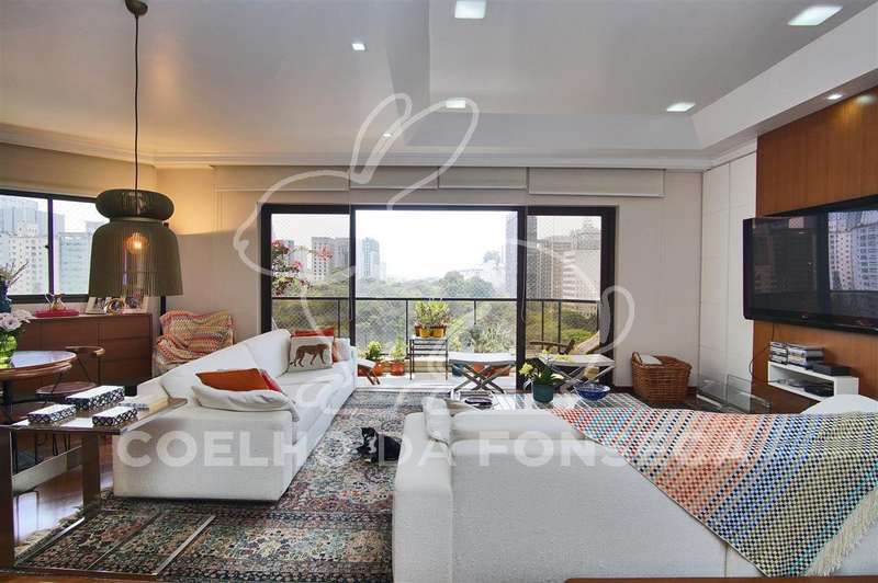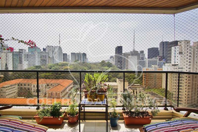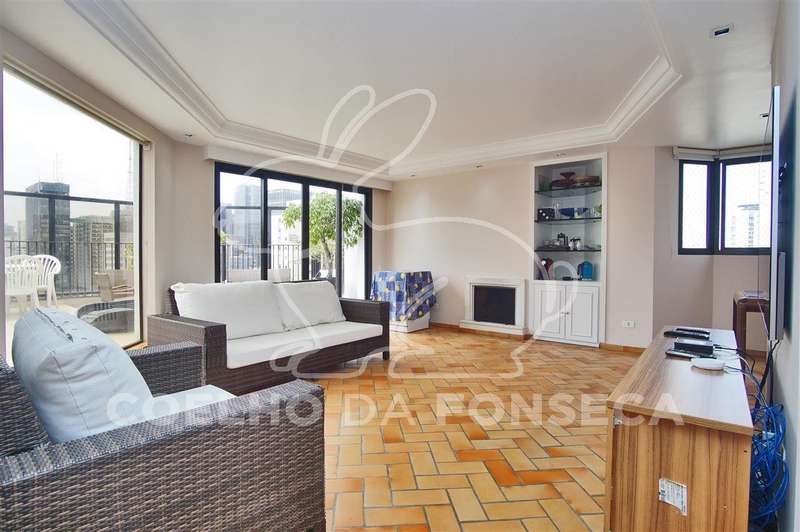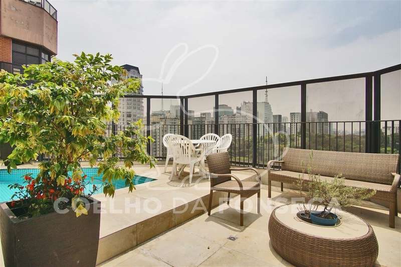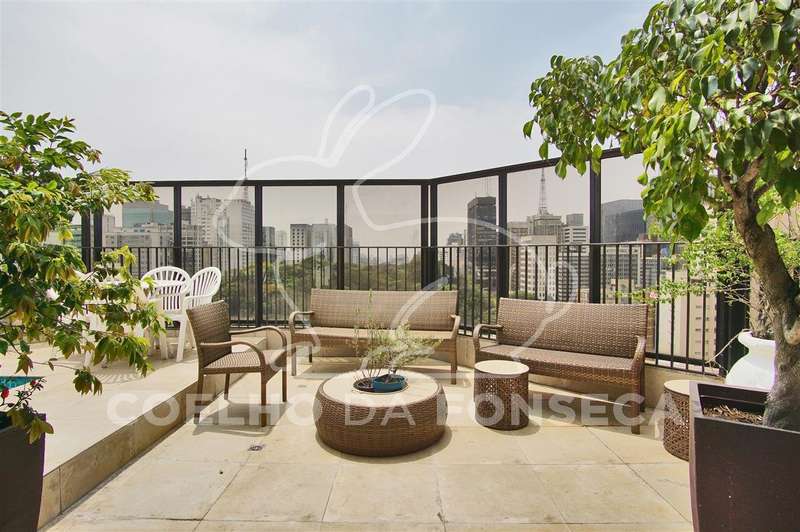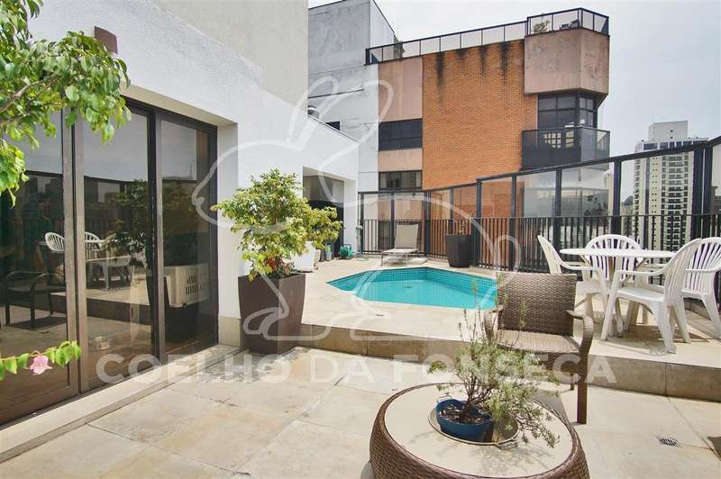 Cobertura Duplex com vista 360º para o Jardins, privacidade e conforto. São 455m² de área útil distribuídos: Piso superior conta com piscina, área gourmet e solarium, cozinha de apoio, sala com lareira e bar, local para sauna, duas suítes com varanda ou jardim de inverno, sendo uma delas em uso como escritório, o Piso inferior possui hall de entrada, living, sala de tv, estar e jantar, varanda, lavabo, cozinha e sala de almoço, além de despensa, área de serviço e suite para funcionária, área intima com duas suítes, sendo a suíte master com closet e banheiro com hidro. No prédio, são 4 vagas de garagem demarcadas, vagas para visitantes, portaria 24 horas, piscina, fitness, quadra poliesportiva, playground, salão de festas, gerador. O charmoso bairro possui todas as comodidades de serviços, Colégio Dante Alighieri, Clube Paulistano, linha de metrô na Paulista, Shopping Centers, restaurantes e entrenimentos de lazer. Visitas exclusivas!