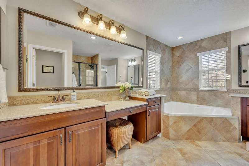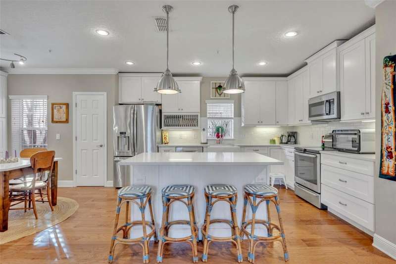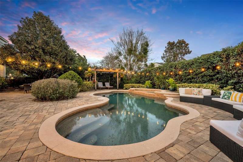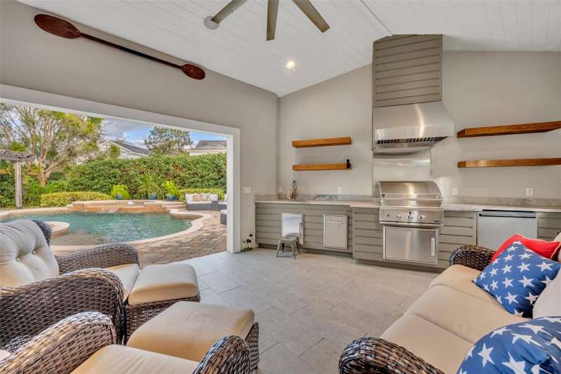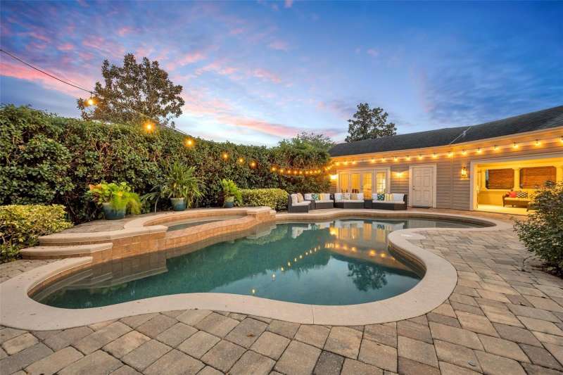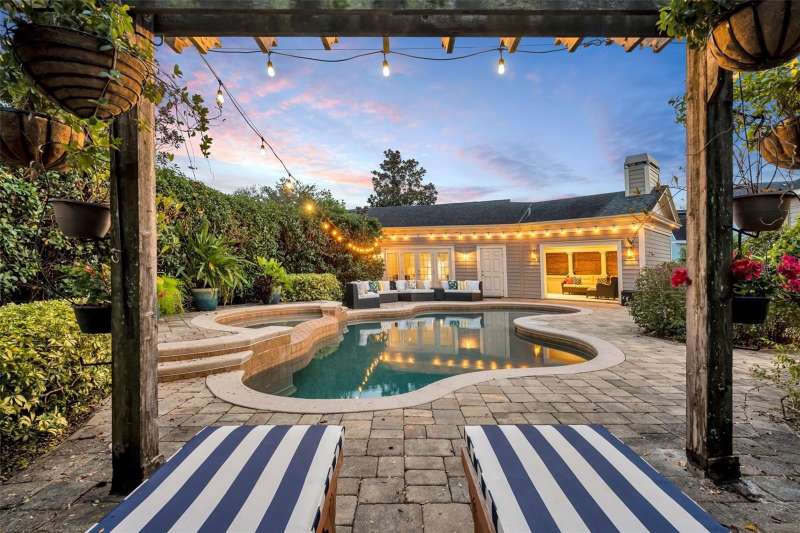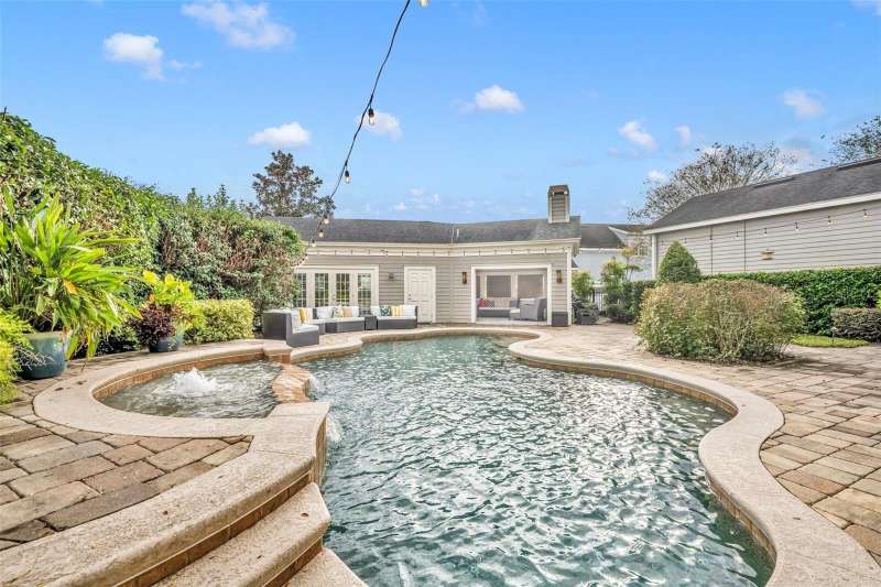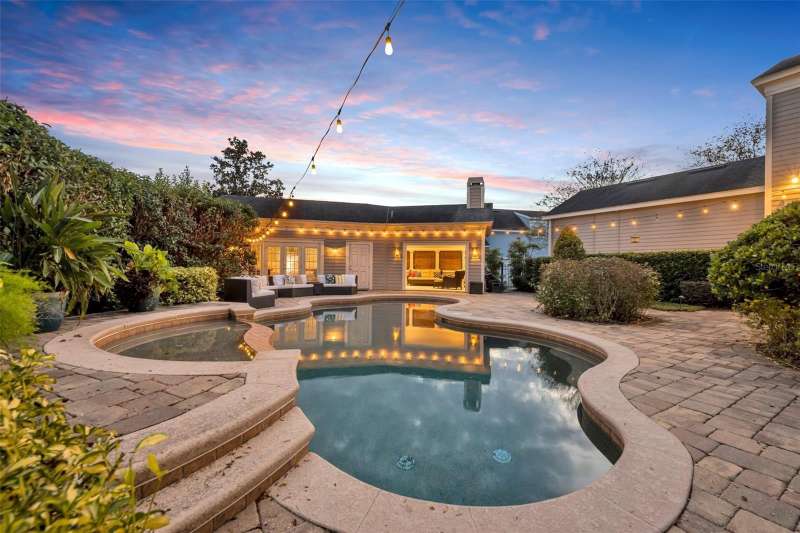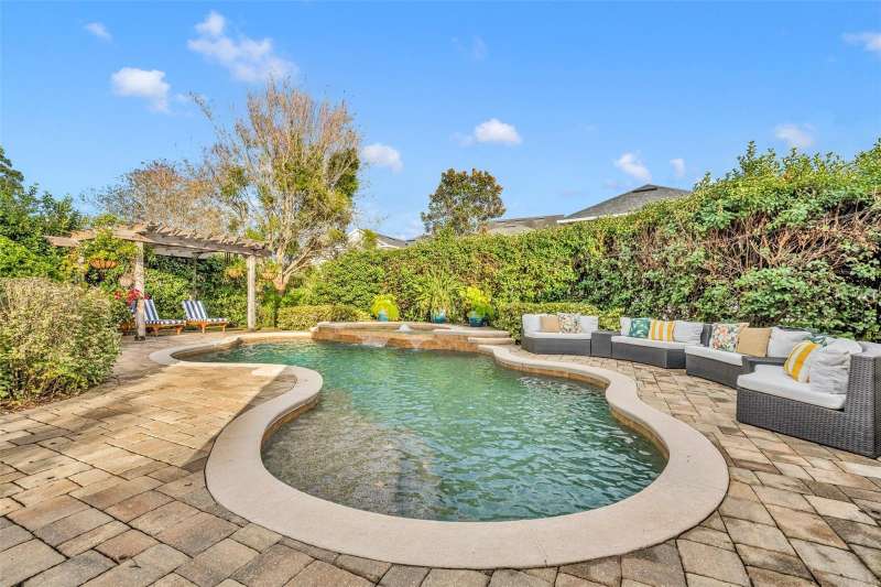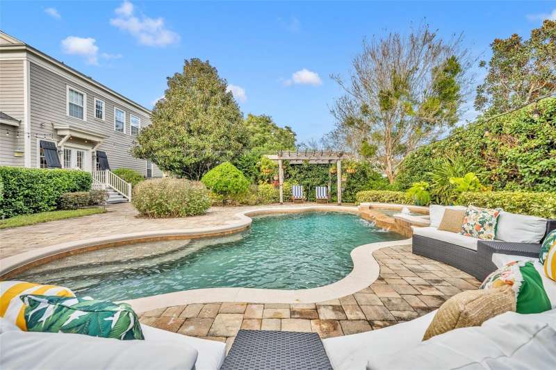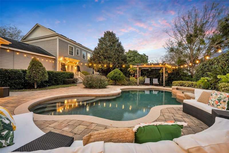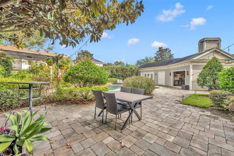 Welcome to this one-of-a-kind oasis pool home located in the heart of Baldwin Park. Nestled on the charming Baskin Mews, this property sits on a rare ¼ acre of land, providing privacy and ample outdoor entertainment space. The beautifully landscaped grounds feature a pebble-tech pool with water feature, a spacious pavered patio, great for lounging by the pool and outdoor dining. A covered cabana with an outdoor kitchen equipped with a large built-in DSC grill, hood, sink, refrigerator, wood-burning fireplace, and TV, making it the perfect spot for year-round entertaining. Attached to the cabana is a 400 sq ft Mother-in-law suite with a full bathroom, separate entrance and direct access to the pool area, ideal for guests or private office space. Inside, the main home there are wood floors throughout, an updated kitchen, which overlooks the family room and features quartz countertops, stainless steel appliances, a subway-tiled backsplash, a farmhouse sink, a large island with seating, and a custom wall of cabinetry designed for easy entertaining and storage. There are three spacious bedrooms, a downstairs office or playroom, and 2.5 bathrooms. The attached two-car garage is equipped with storage systems, providing space for vehicles, toys, and bikes. There is also an oversize/extended driveway directly behind the garage offering space for several cars, which is a huge plus. Upstairs, the primary suite offers tray ceilings, split vanities with a makeup area, a soaking tub with a separate shower, and a walk-in closet. Two additional bedrooms, an additional bathroom, and a laundry room complete the upper level. This home's location couldn’t be more ideal. The property is near High Park, a lush, tree-lined park with a pond, two pavilions, a tot lot, and pool. It is also adjacent to the Lake Baldwin Running Trail and close to Lake Baldwin Dog Park, making it the perfect place for outdoor enthusiasts. Baldwin Park is a community that provides numerous parks and walking trails, with access to three pools, a fitness center, and several playgrounds. The downtown village provides plenty of dining, shopping, and entertainment options, and the home is just a short distance from Downtown Orlando and Winter Park. The community is currently zoned for Baldwin Park Elementary, Glenridge Middle, and Winter Park High School. If you love the outdoors and community living, this is the perfect place to call home.