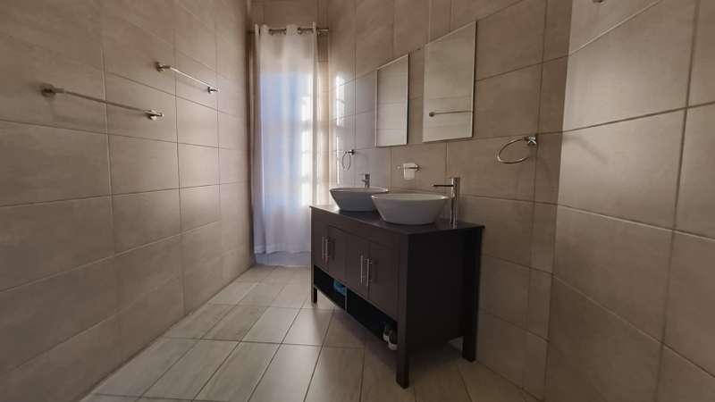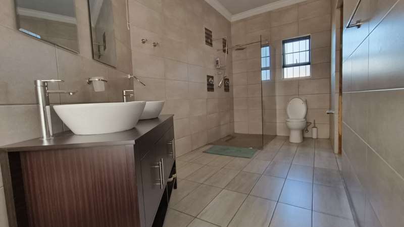 This beautifully maintained 3-bedroom freehold property offers the perfect blend of comfort, functionality, and entertainment. Ideally suited for families or those who love to entertain, the home is thoughtfully designed with modern finishes and open-plan living. Two of the three bedrooms feature full en-suite bathrooms, providing privacy and convenience. All bedrooms are well-sized with built-in cupboards and natural light throughout. The heart of the home is the open-plan living area, seamlessly connecting a spacious lounge, dining room, and well-equipped kitchen—perfect for both relaxed family living and entertaining. A convenient study nook adds to the practicality of the layout, ideal for working from home or student needs. Outdoors, the highlight is a charming separate thatch entertainment area complete with a built-in braai, offering a relaxed, rustic atmosphere for gatherings year-round. The property also includes a detached double garage, providing secure parking and additional storage space. This home is the ideal combination of indoor comfort and outdoor charm—ready for you to move in and enjoy!